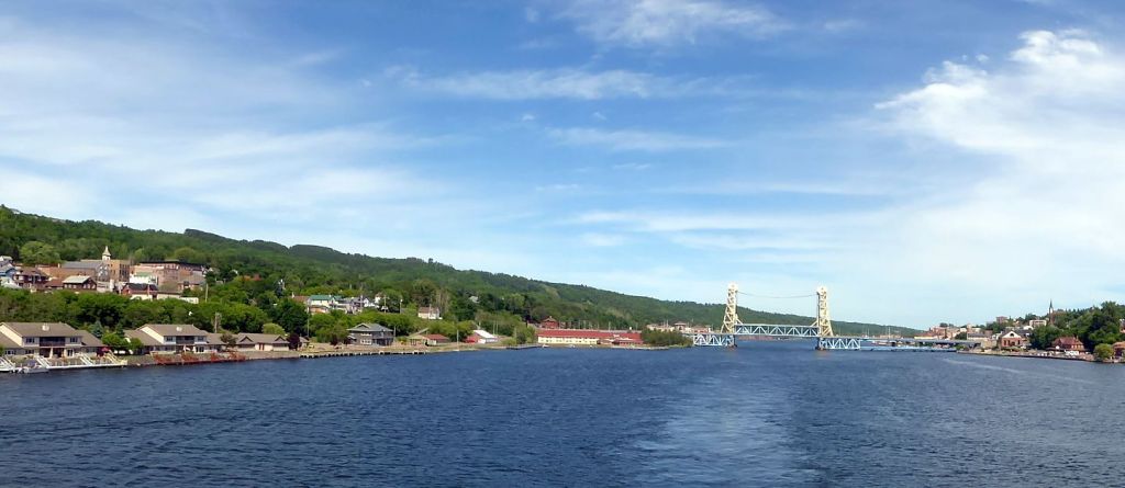 We were impressed with the attractive park along the lake— a wonderful place to relax, have a picnic, enjoy the flowers, and take in the views of the Portage Lake Lift Bridge. Connecting Houghton to Hancock, the bridge is the world’s heaviest and widest double-decked vertical-lift bridge. In the winter, the lower level is used for snow mobiles as a safer way to cross over the lake rather than on the frozen (or not so frozen, as the case may be) lake. More than one snowmobile has ended up breaking through the ice, due to its driver’s lack of better judgment!
