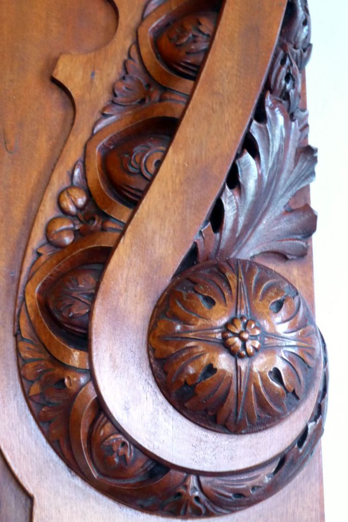Our included hop-on-hop-off tour of Muskegon included tours of both homes.  Bruce and I have toured many historic and grand homes throughout our years of traveling, but I can definitely say this tour was one of our favorites.  Glass and wood are my two favorite mediums, and the Hackley house was loaded with both.  It took fifteen men two years to complete the hand-carved woodwork alone!