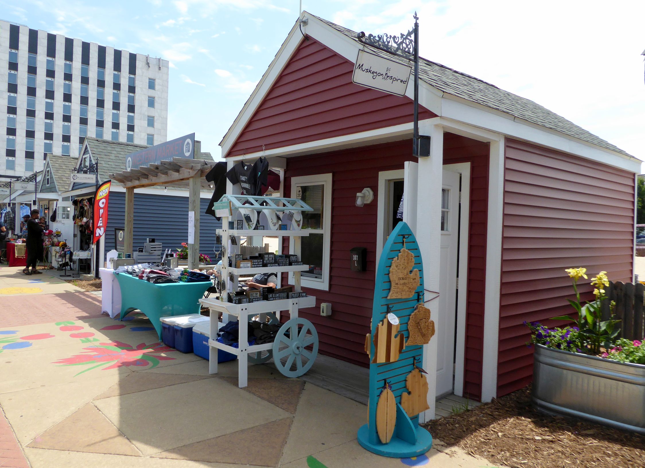 Our visit to Muskegon was on a Saturday, so Muskegon Farmers Market was in full swing.  We walked through town to go have a look.  On the way, there was a downtown street music festival in the process of getting set up for the weekend, so we took in the sights and smells of food trucks preparing their cuisine for the expected crowds.