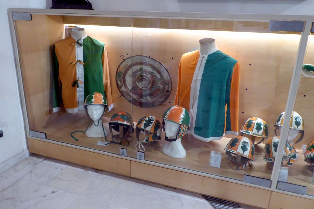 These contrade were originally set up during the Middle Ages for military purposes when Siena fought to preserve its independence from Florence. Over the years, they became a source of civic pride and patriotism. Within the contrada, everybody looks out for each other as an extended family. Each contrada has their own symbol, colors, flags, motto, museum, church, fountain, and festivals; and, most importantly, a horse entered in the all-important and most-celebrated festival of all, the Palio. These people live for the summer Palio, an approximately 70-90-second bareback horse race of three laps of mayhem around the dirt-filled Piazza del Campo that takes place on July 2 and August 16. The turns are sharp, and it’s typical to see jockeys thrown off their horses. No worries; it’s the horse that wins, not the jockey, and riderless horses have won on several occasions.