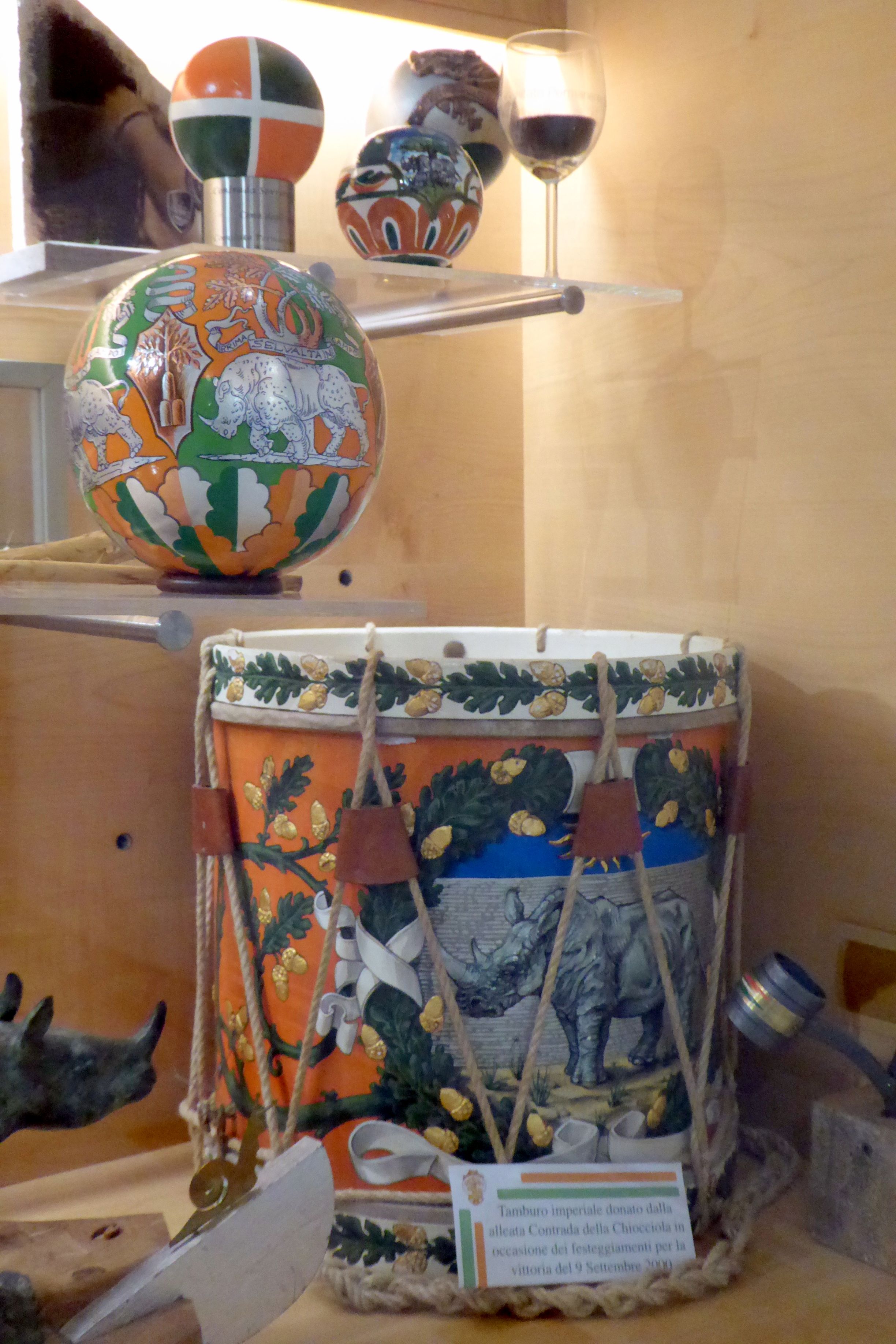 As we walked through a few of the contrade during our walking tour, I got a sense of team spirit and community. Homes displayed their contrada’s flag and symbol; and, there was a palpable pride within each district, especially if they had won a past Palio.