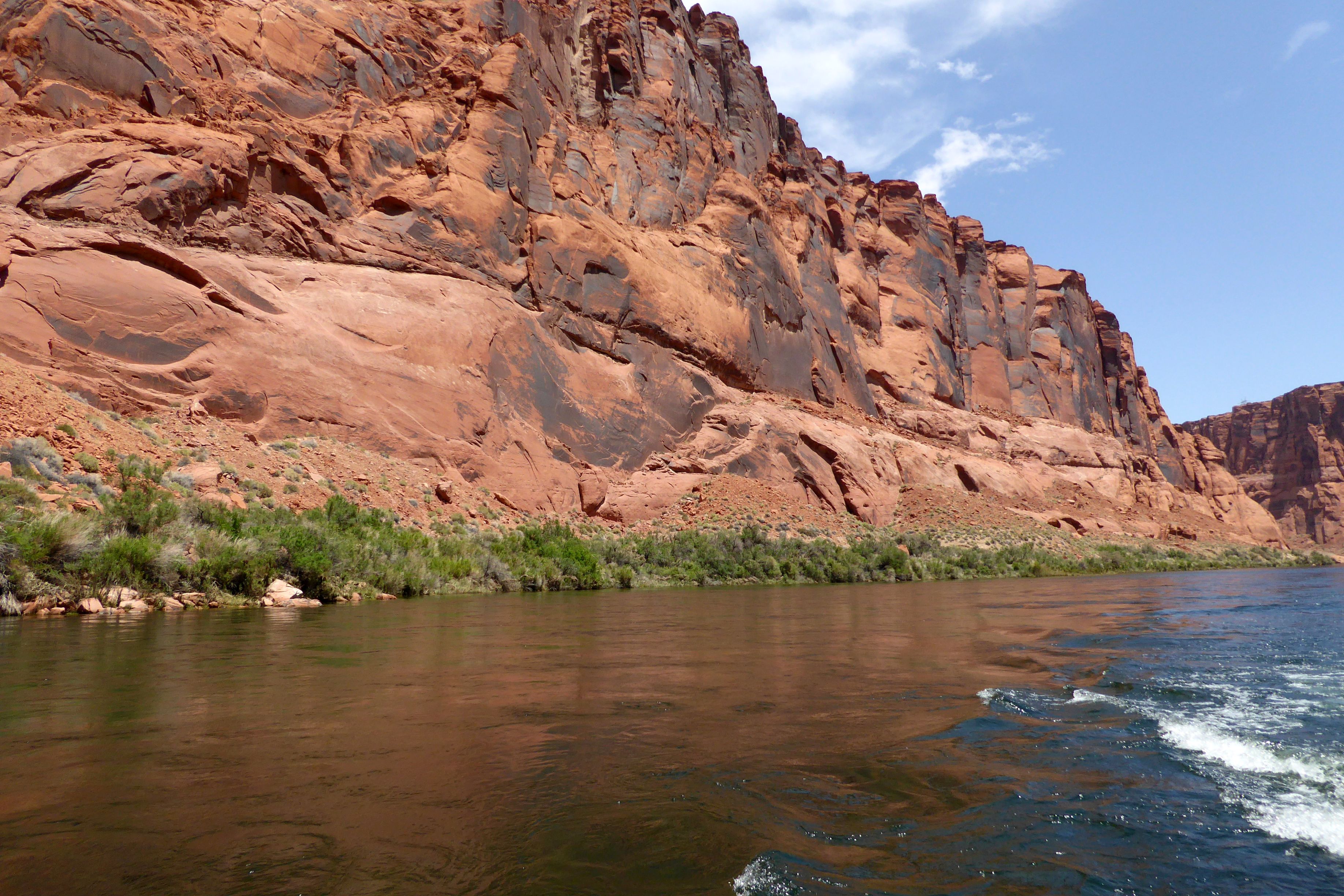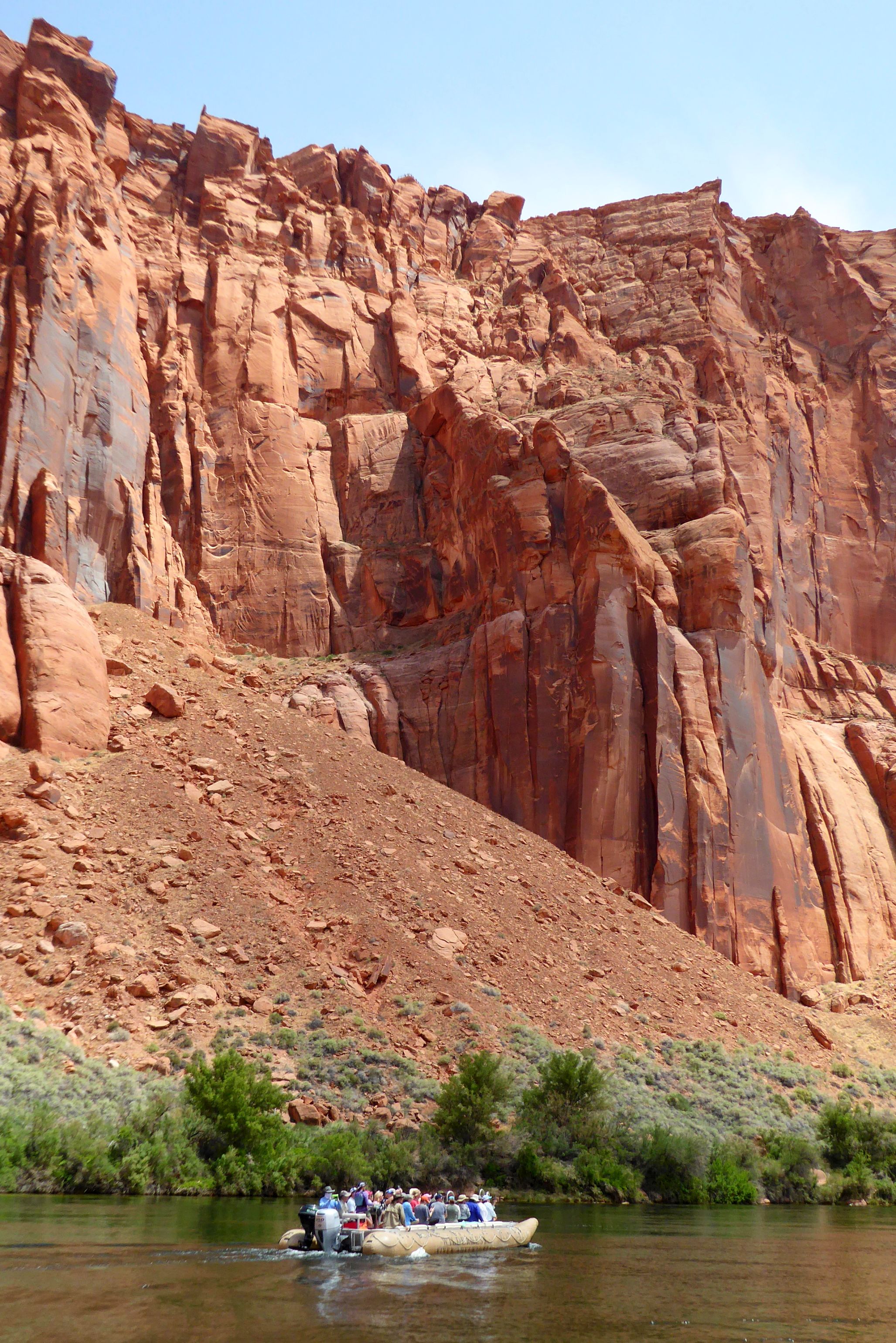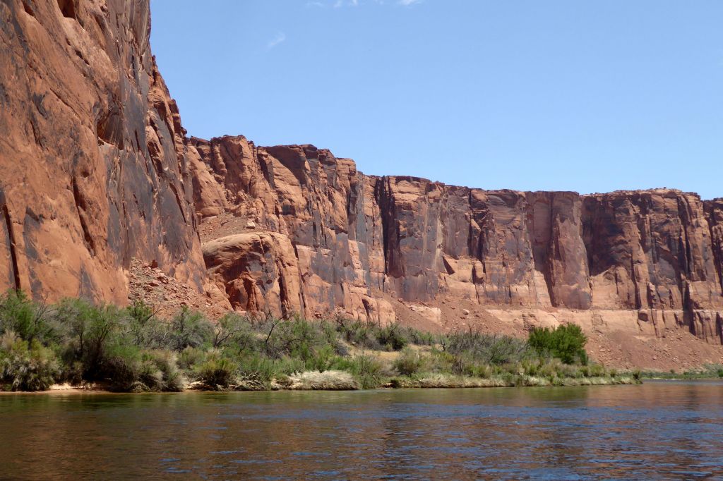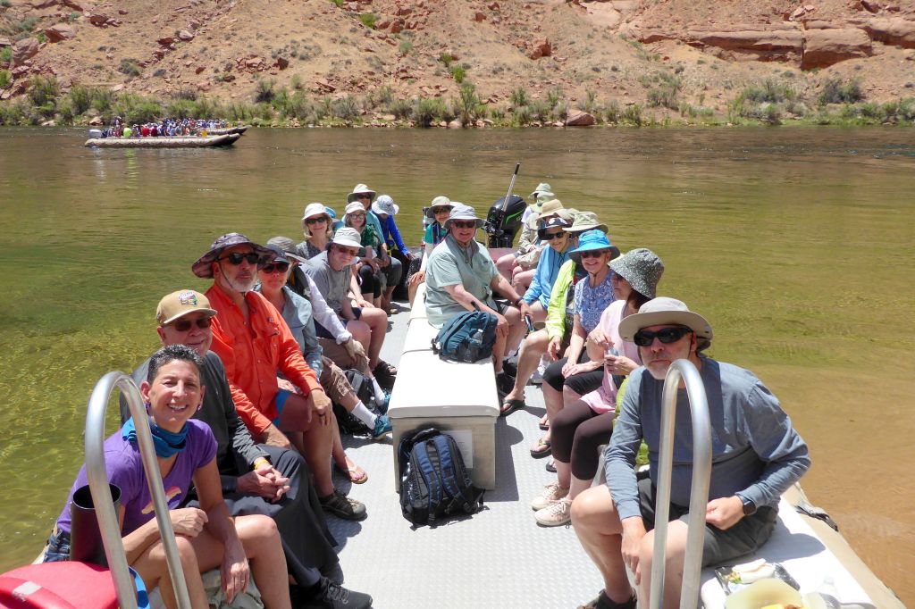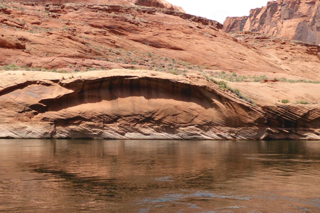 We were actually in Arizona; we had arrived in Page the night before. Located near our hotel, we had boarded the tour company’s bus for a ride to the boat launch through a two-mile long Glenn Canyon Dam access tunnel. We then boarded a motorized pontoon raft.
