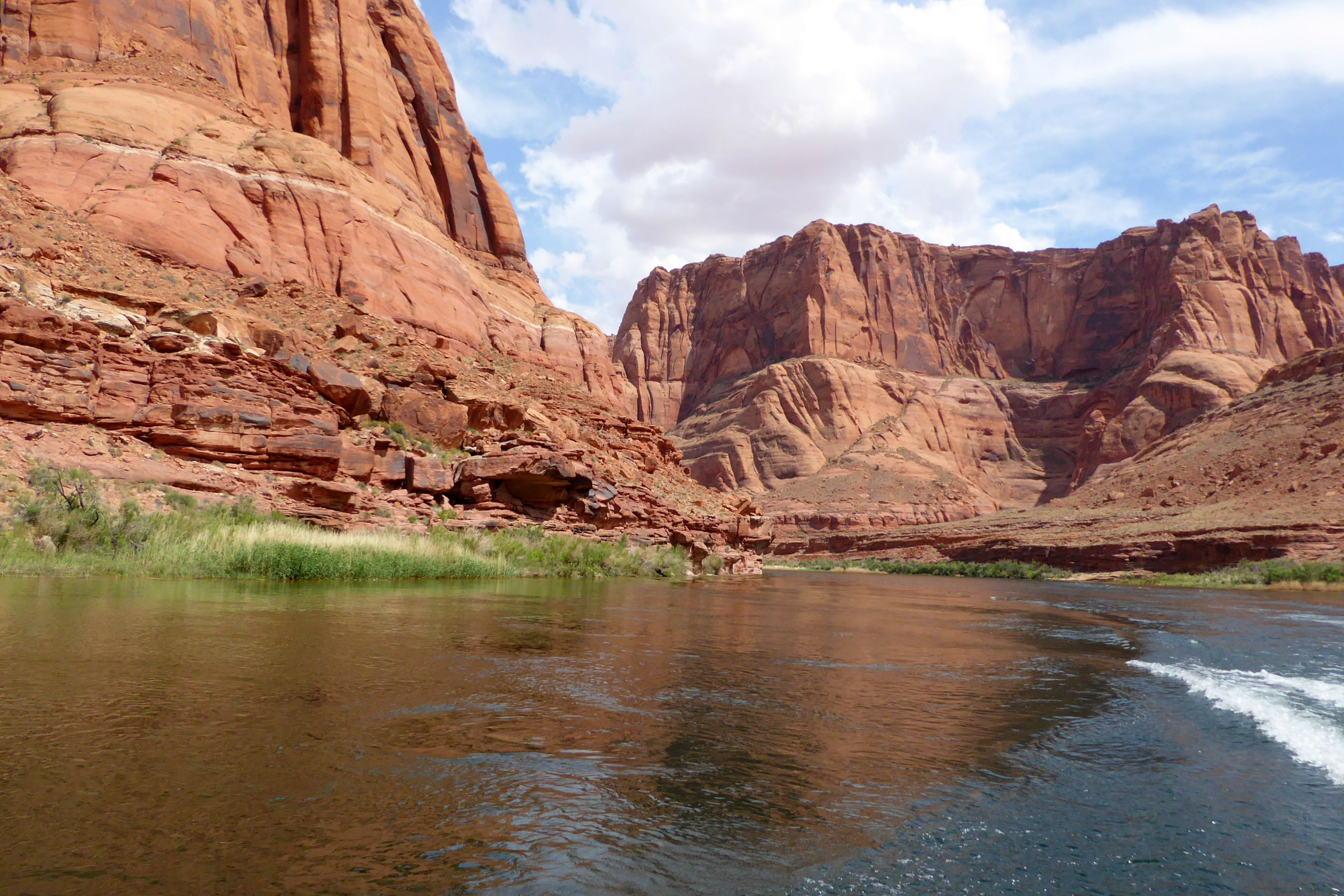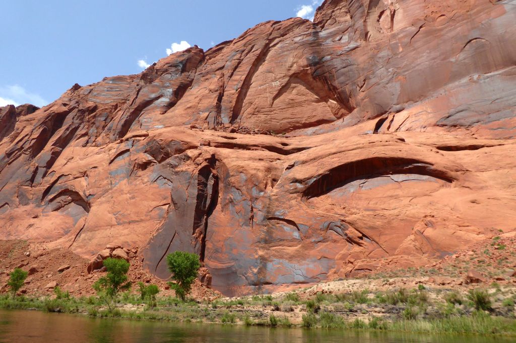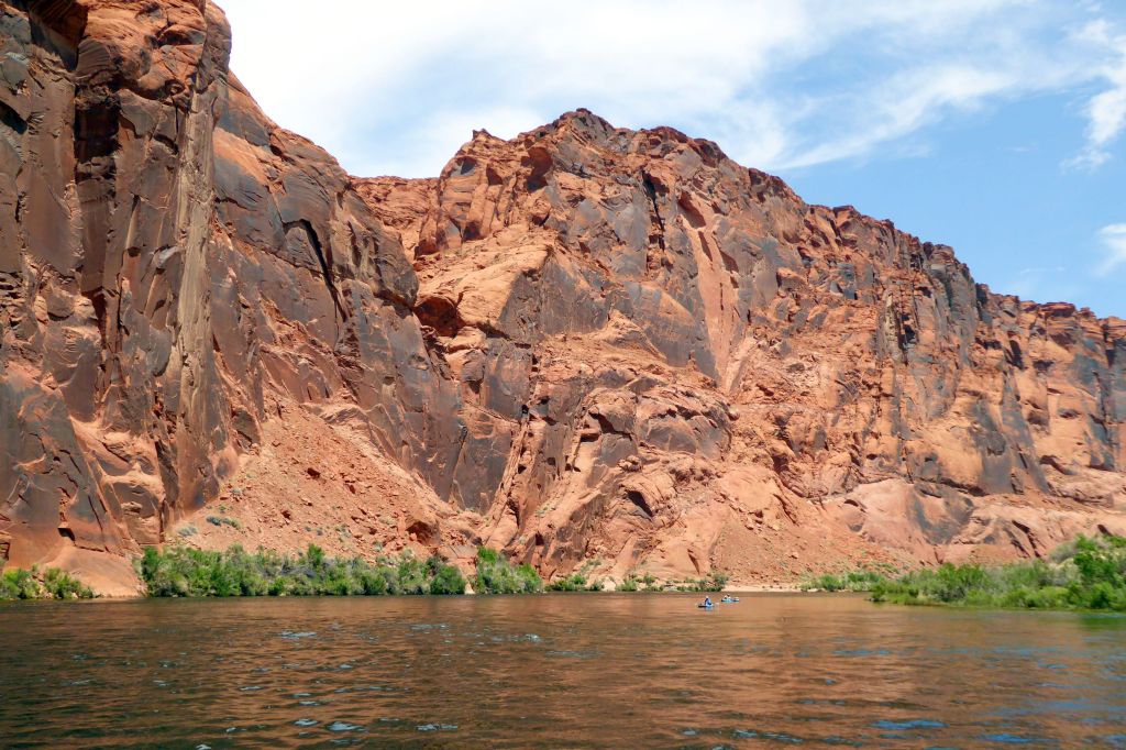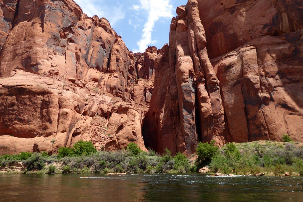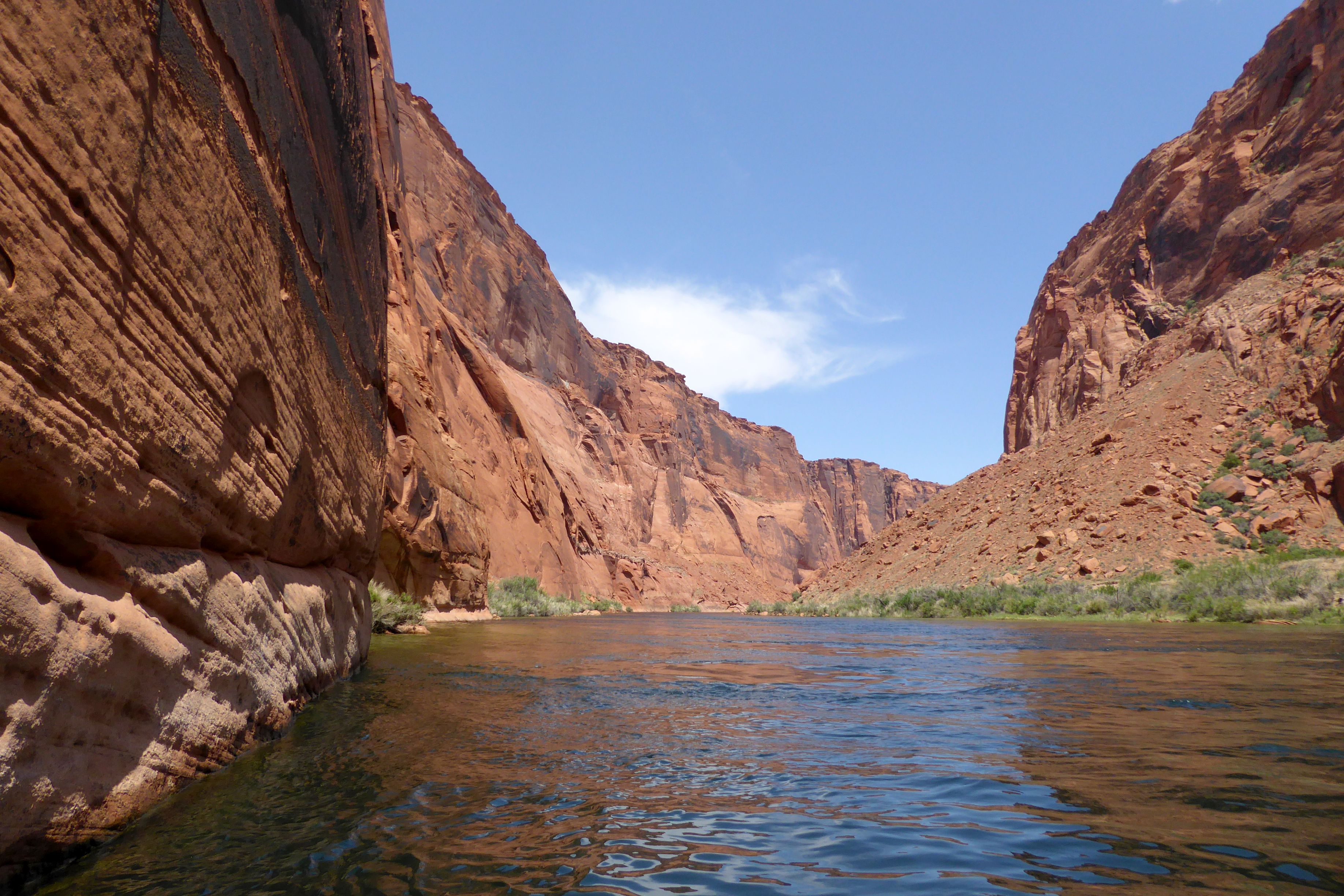 We were actually in Arizona; we had arrived in Page the night before. Located near our hotel, we had boarded the tour company’s bus for a ride to the boat launch through a two-mile long Glenn Canyon Dam access tunnel. We then boarded a motorized pontoon raft.
