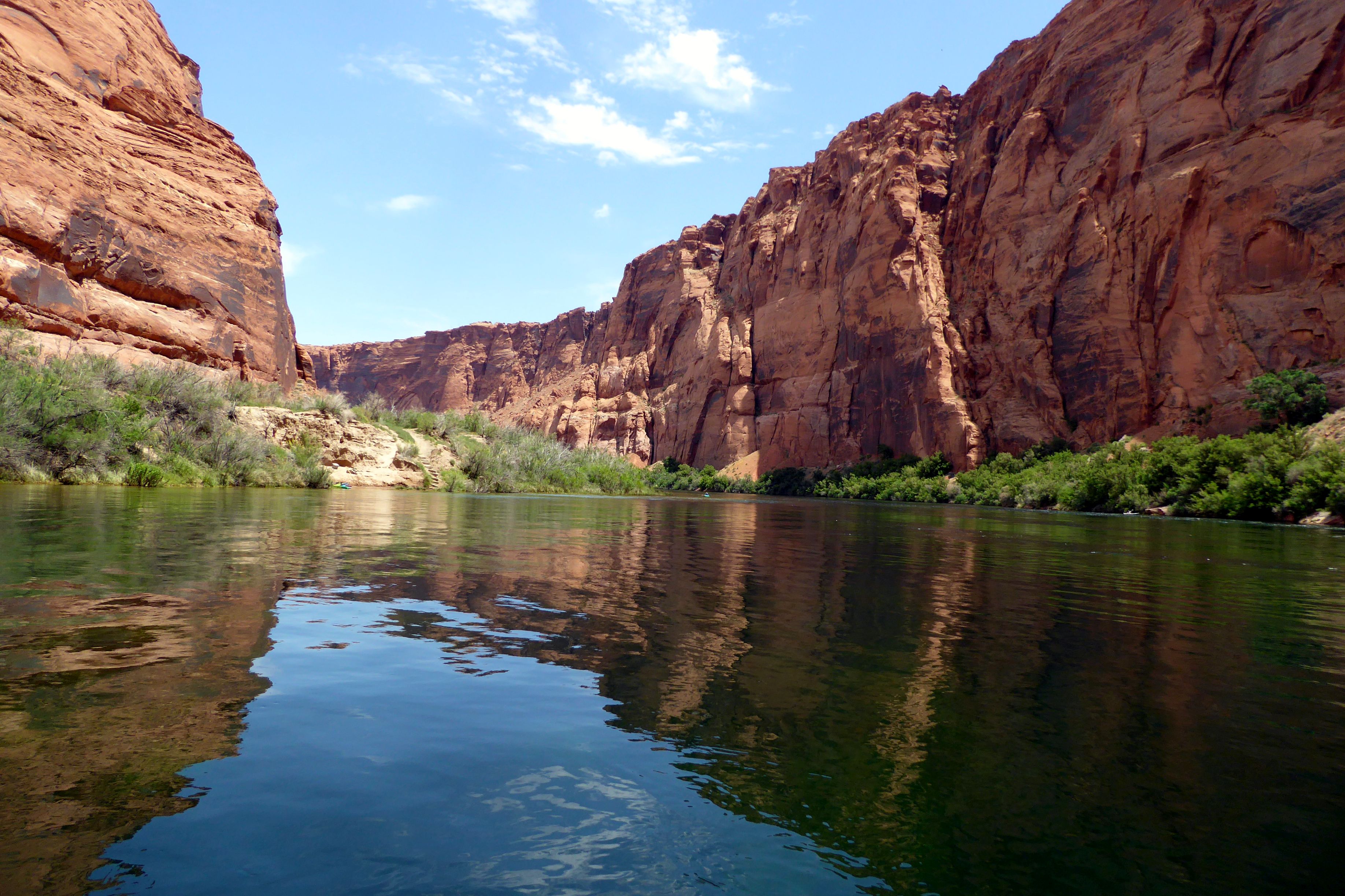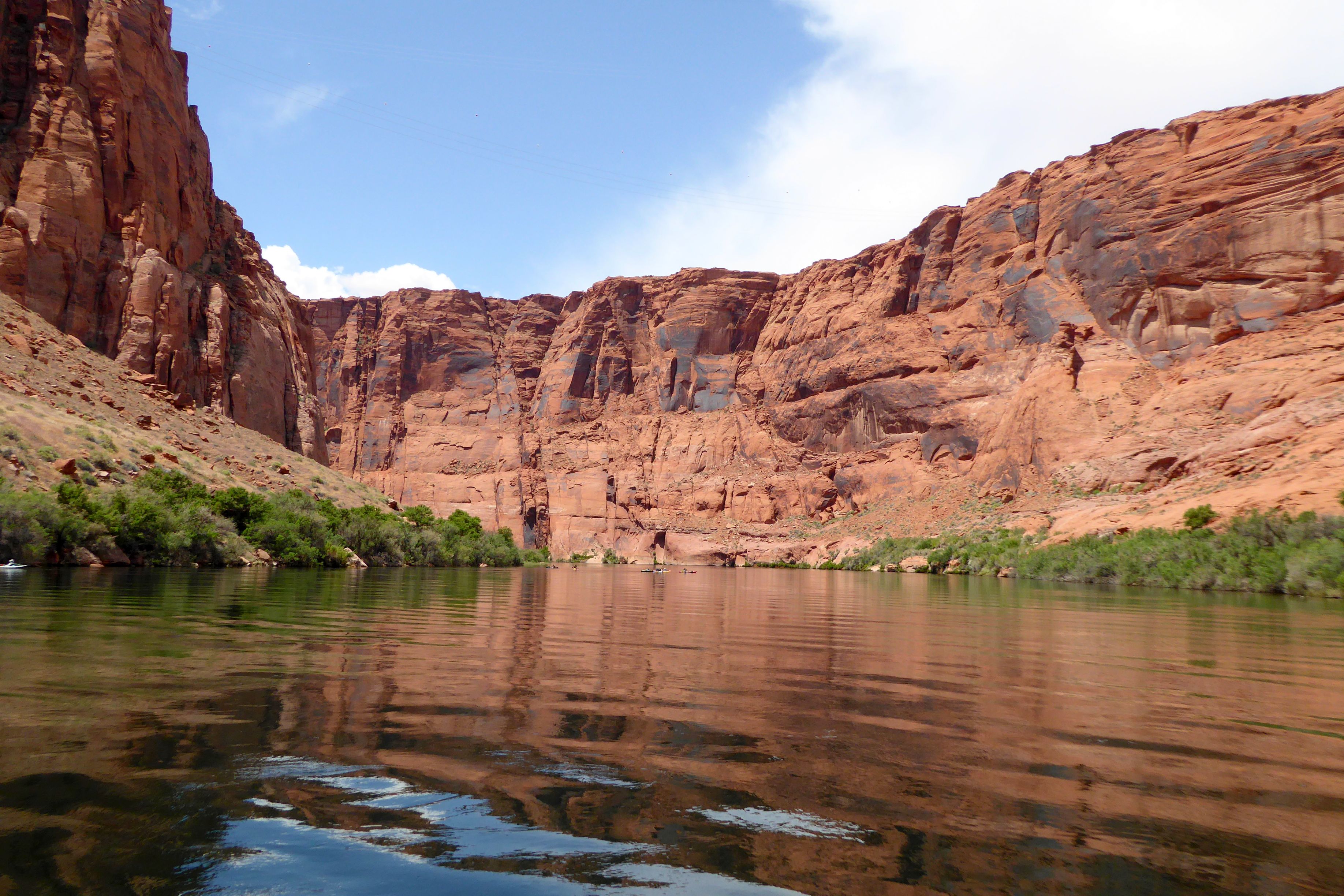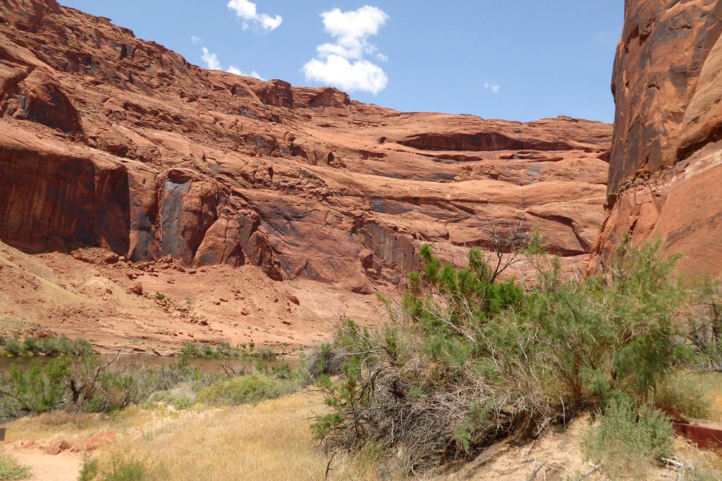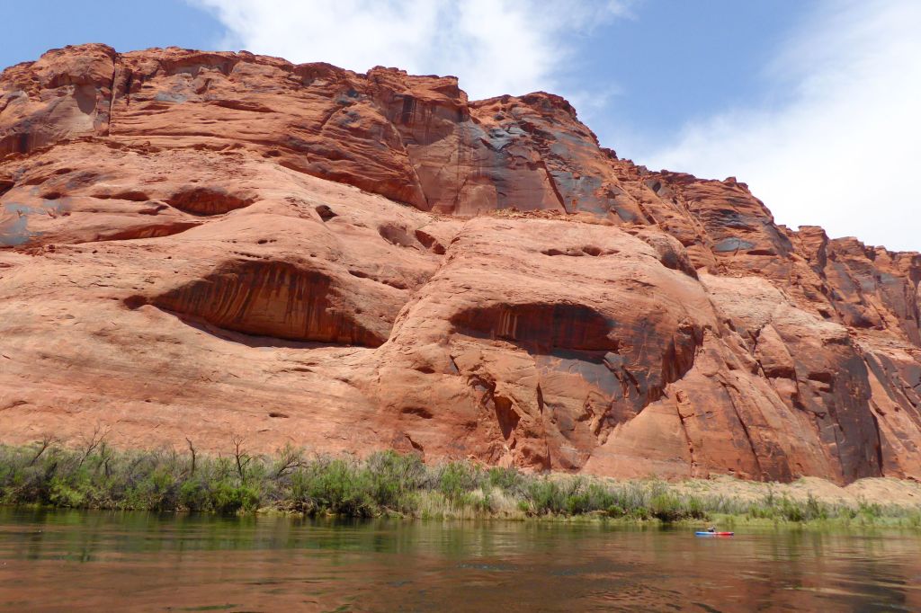We were actually in Arizona; we had arrived in Page the night before. Located near our hotel, we had boarded the tour company’s bus for a ride to the boat launch through a two-mile long Glenn Canyon Dam access tunnel. We then boarded a motorized pontoon raft.