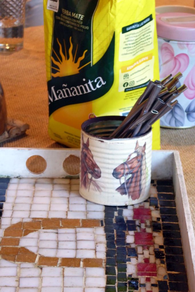 The etiquette attached to drinking mate is just as much a part of drinking mate as the mate itself. It is drunk in social settings, with family and friends. The same gourd and metal straw is passed around and shared by all, so you can imagine how much COVID disrupted this tradition! Instead of passing the gourd and straw, they resorted to passing the thermos of hot water.