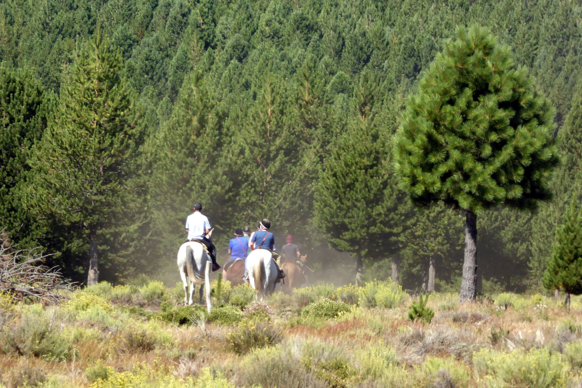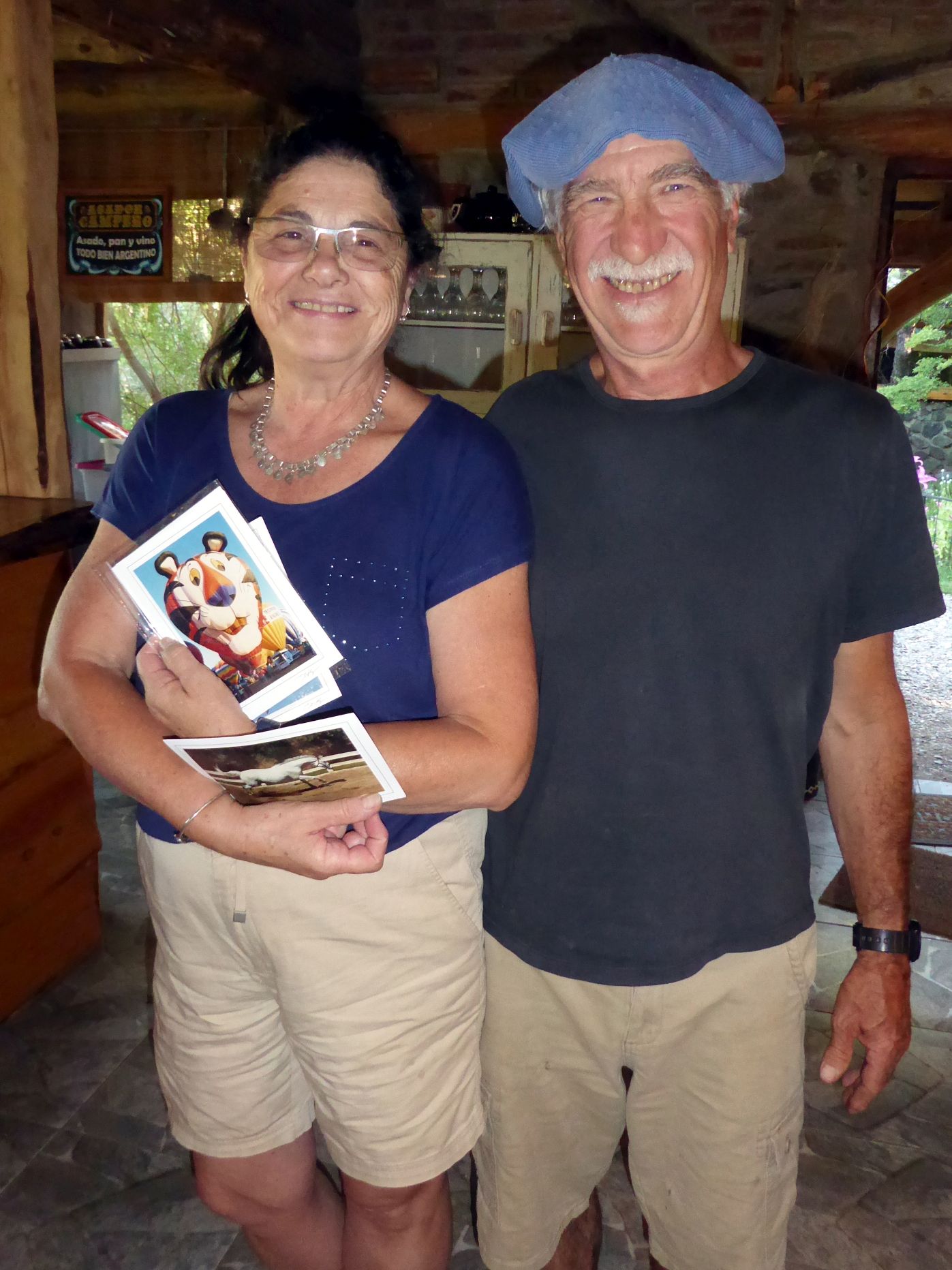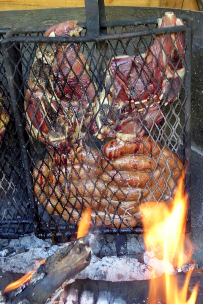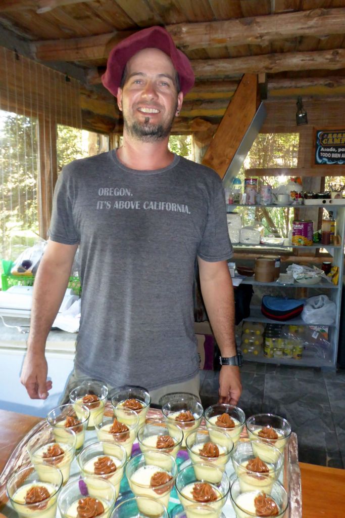 “Los Haneck” was a very cool Patagonian ranch where we were warmly welcomed. Bruce passed on the horseback riding as well, and we had a great time just hanging out with Andrea, Letti (our local guide), Monica Haneck, and her dogs. Meanwhile, Chango and Pancho prepared a barbeque dinner of lamb, sausage, and chicken. Served with salad (veggies—yay!) and a delicious dulce-de-leche-topped traditional flan; it was a fabulous feast!