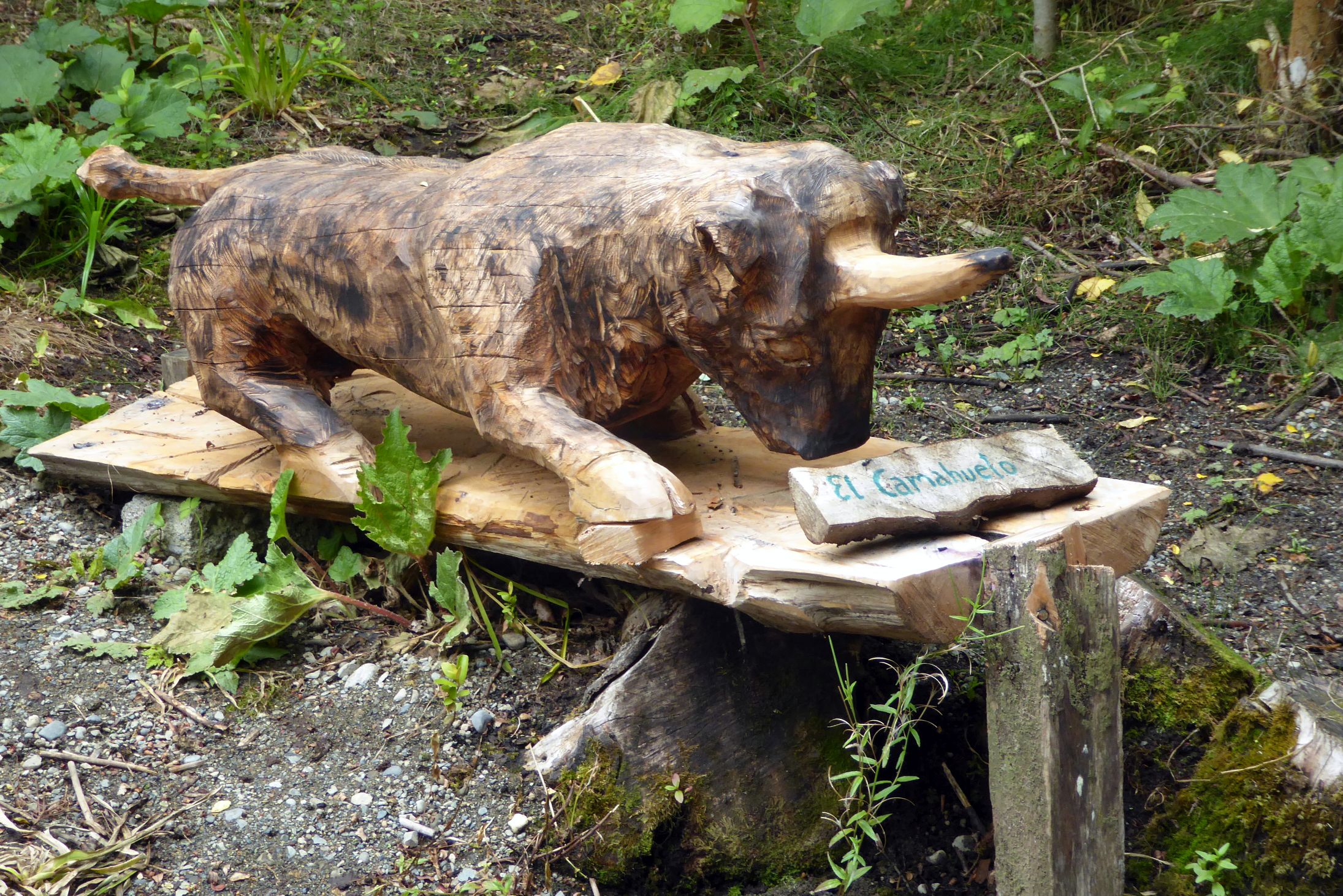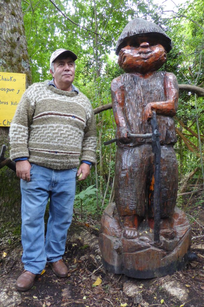 After helping Raul dig up some potatoes, he took us on a little nature walk through his property to see his life-size wood carvings. Of course, he built his own bridge across a pond as well as the walkway. Just look at this man’s talent! His carvings depict famous mythological characters that are very much a part of the Chilote culture.