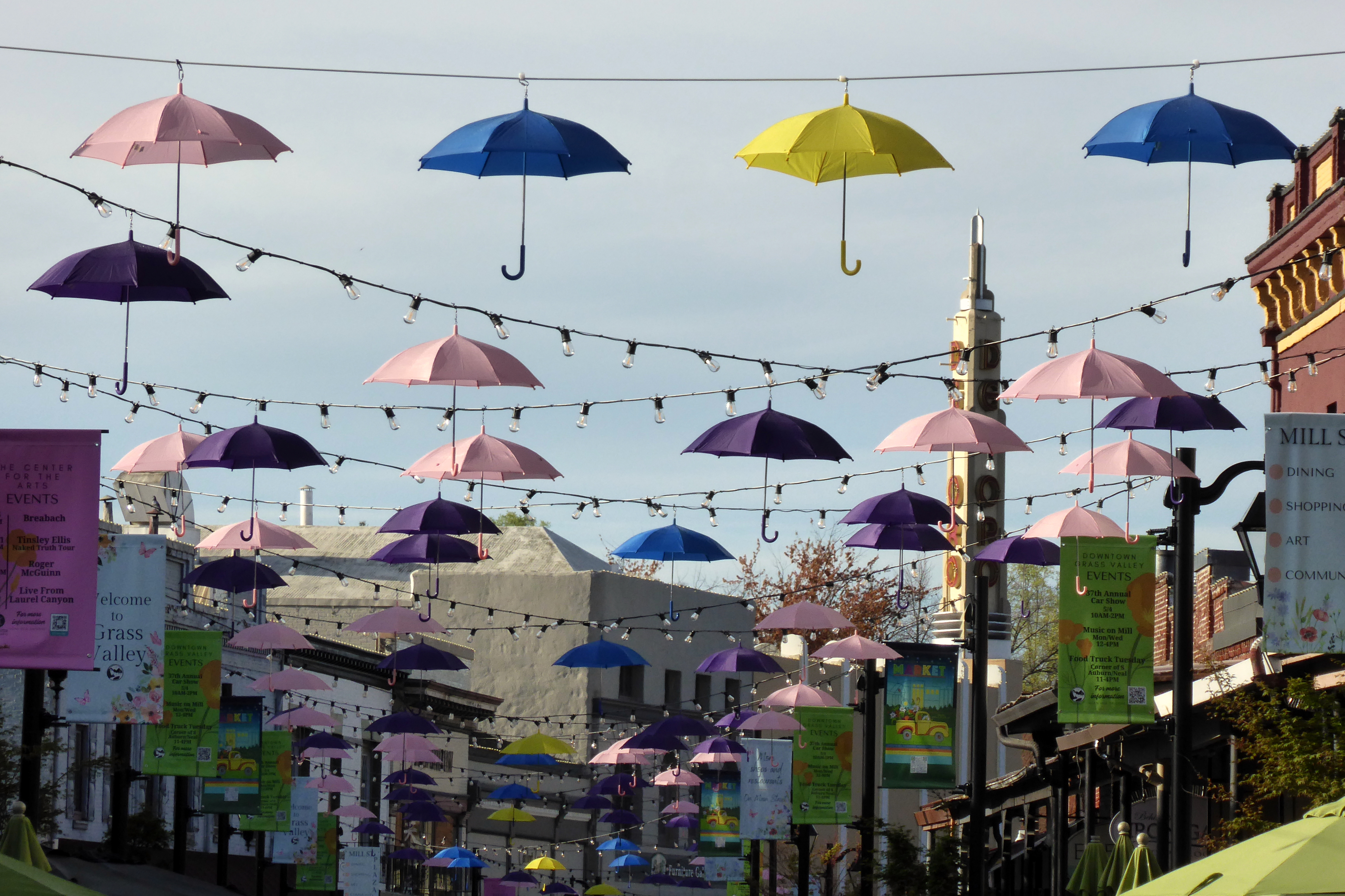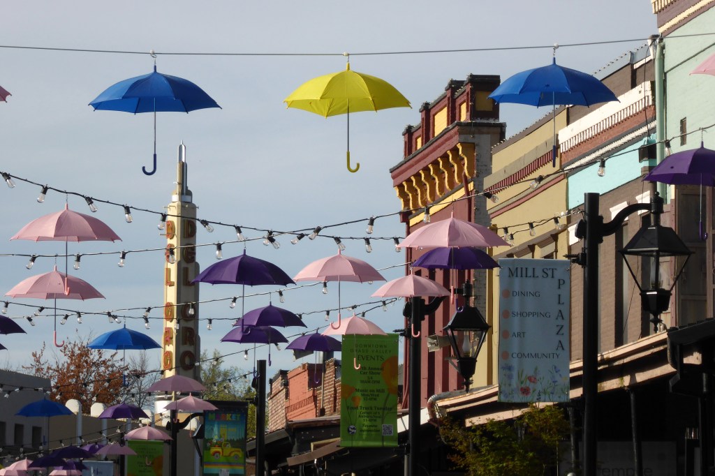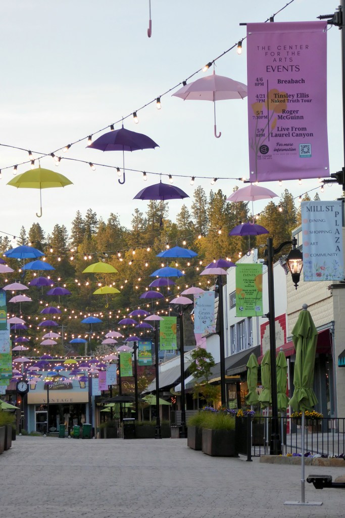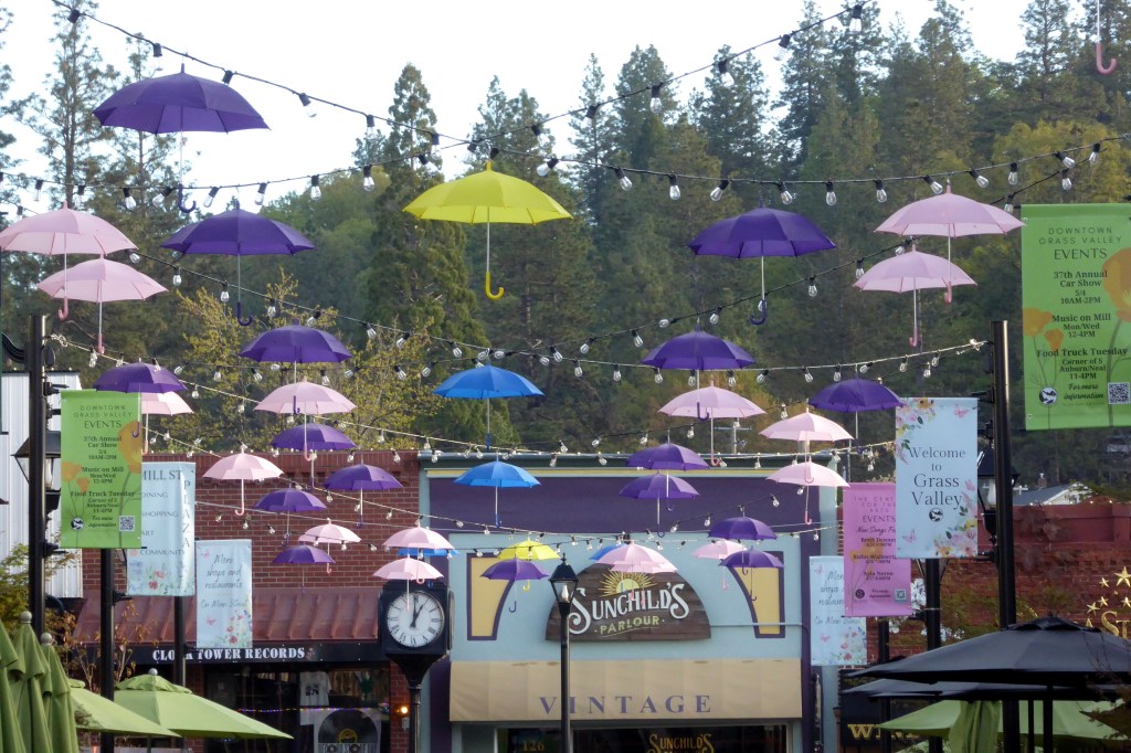 NORTHERN CALIFORNIA, APRIL 2024, GRASS VALLEY #1: Umbrellas, Umbrellas, Everywhere Umbrellas! Posted on May 2, 2024 by Elaine-iaK's Travels Mill Street Plaza, Downtown Grass Valley: Like Loading... Related