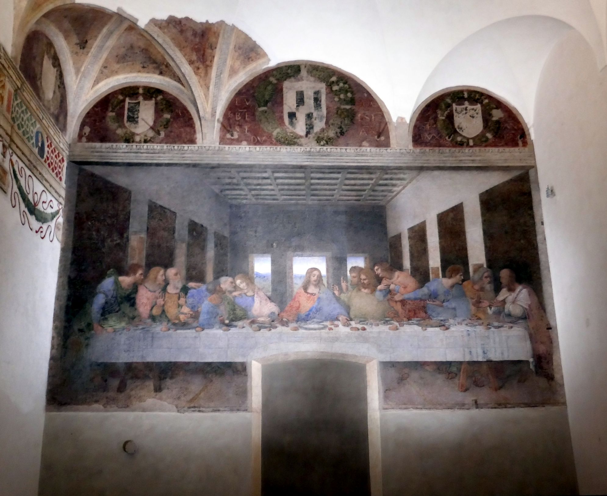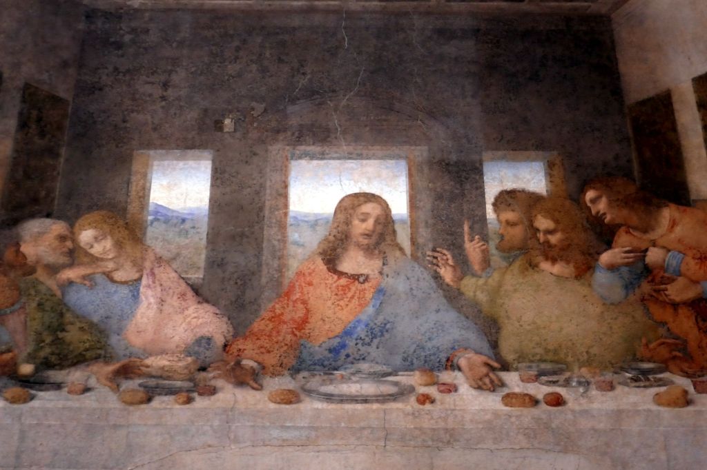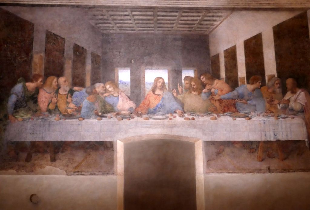 The church, built after the convent, dates back to 1490 and is a UNESCO World Heritage Site. Da Vinci painted the mural in 1495-1498, during the High Renaissance period.  “Truly I tell you.  One of you will betray me.”  These were the words spoken by Jesus that provoked intense emotions in the twelve apostles.  Da Vinci portrays their shock in his masterpiece that has been viewed by countless people over hundreds of years.