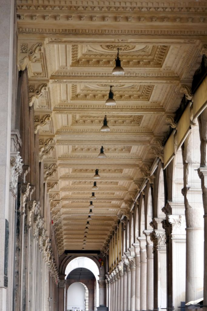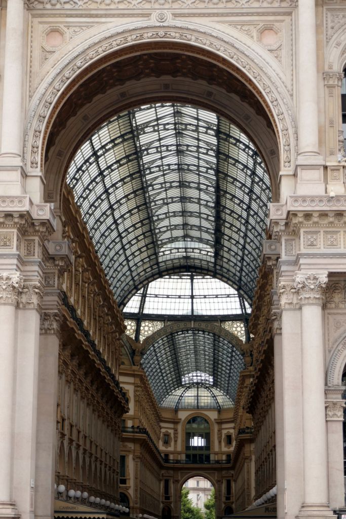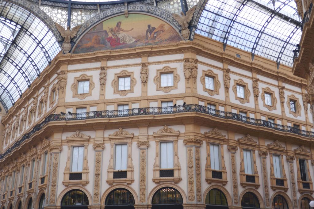 Our walking tour took us past the Teatro La Scala opera house and Duomo di Milano to the Galleria Vittorio Emanuelle II.  This is no ordinary shopping mall; it’s the place to shop!  Not that we were there to shop; haute couture isn’t our thing.  Built in the late 1800’s, the architecture, with its glass dome and mosaic floors, is gorgeous.