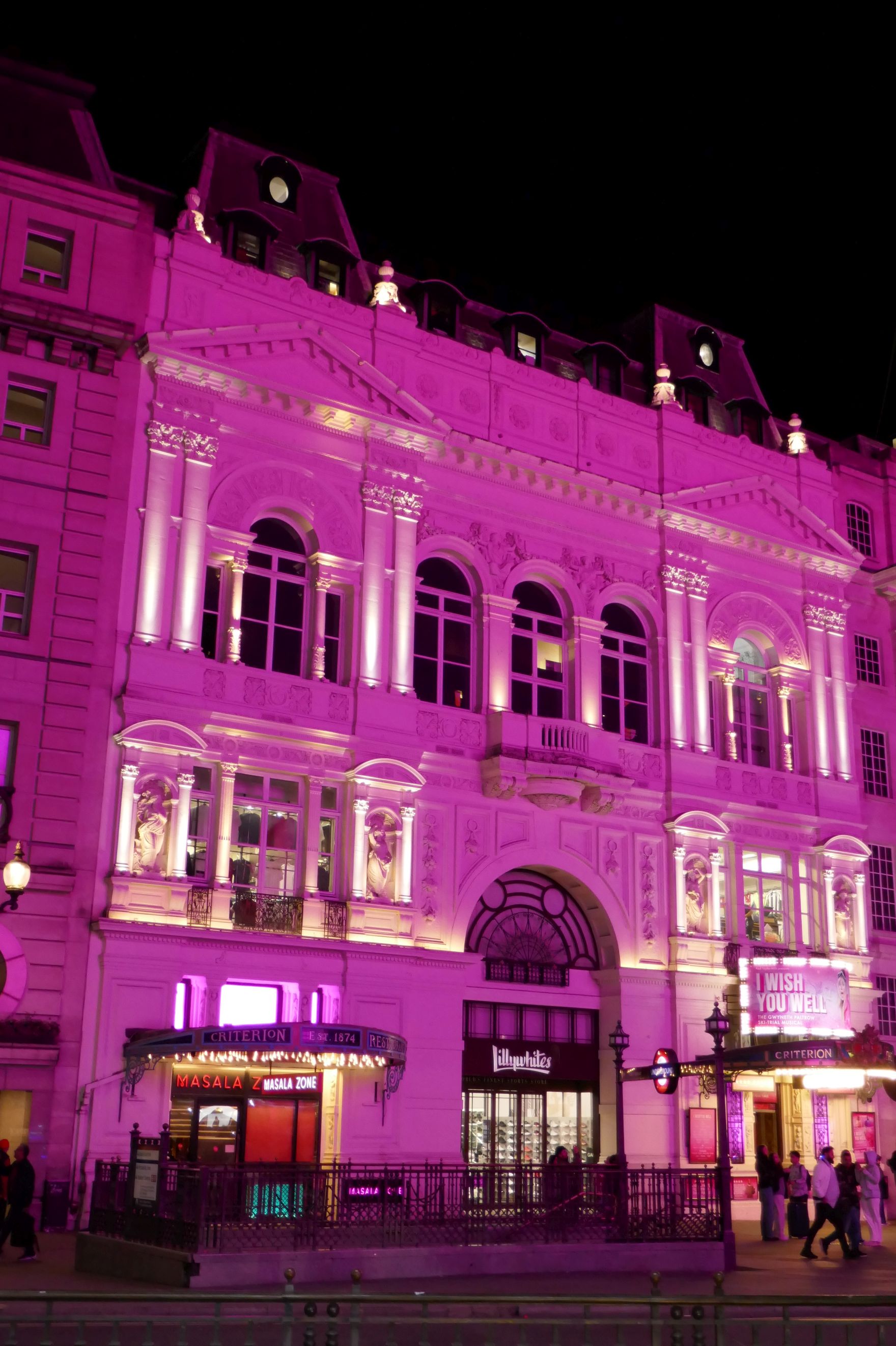 Jumbotrons with advertisements were so bright, they lit up the buildings of Picadilly Circus.
