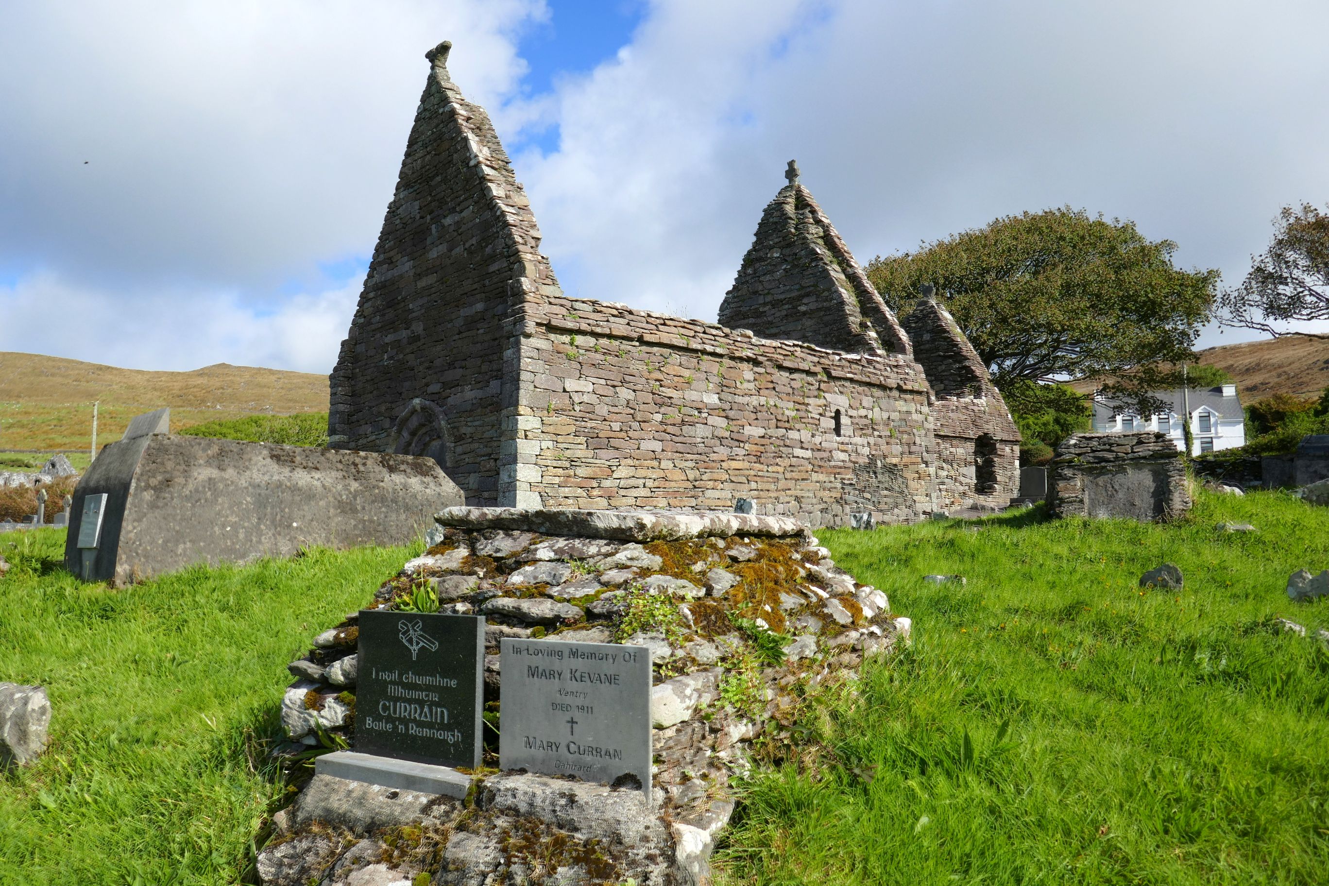 After the impactful Blasket Centre visit, our group continued driving along the Dingle Peninsula, stopping to see the remains of Kilmalkedar Church, built in the 12th century.