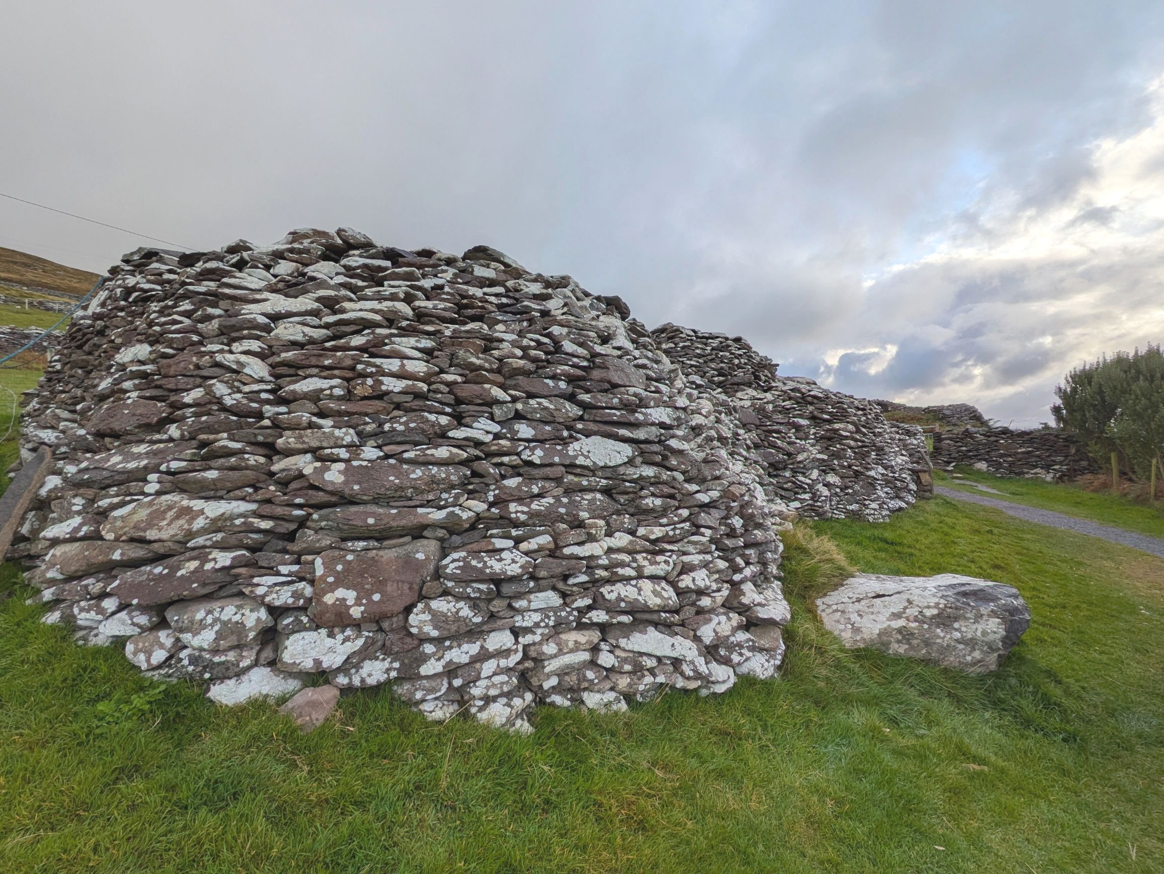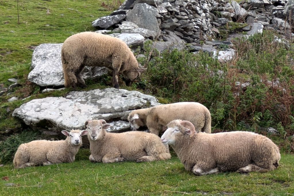 Our morning began in Slea Head, the westernmost point in Ireland, to see ancient beehive-shaped dry-stone huts located on what is now a small sheep farm. It was amazing to see how meticulously these huts were constructed, by stacking the rings of stone so that each layer went further inward until a pointed roof was formed to cap the structure. Nobody knows just how old these huts are, because this method of construction was used in Ireland for thousands of years.
