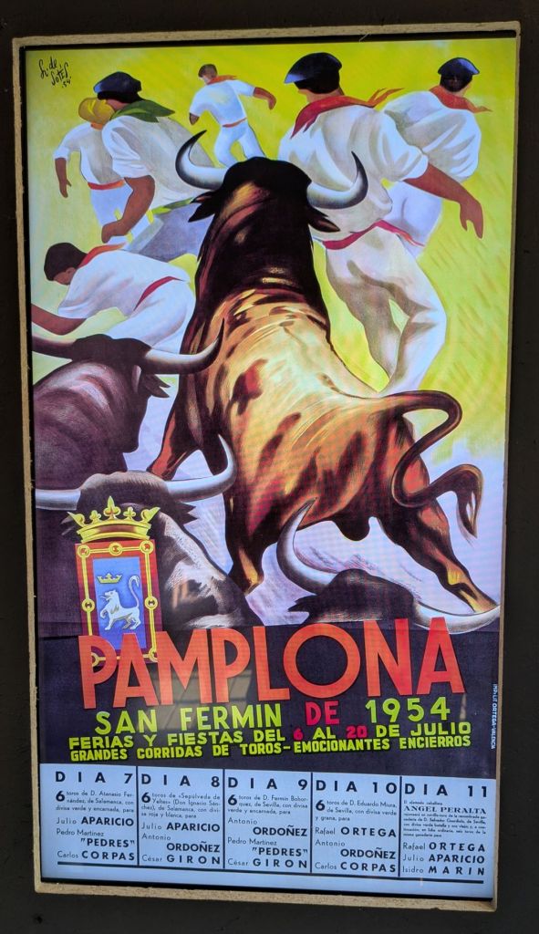 Our group met with Gorka, a local man who used to run with the bulls before he got smart and quit.  Asked why he chose to run in the first place, he said it was a way to overcome his fears.  Although runners are required to be at least 18 years old, identifications weren’t checked when he did his first run at 17.  It was interesting listening to his experiences running with the bulls and seeing pictures of him during his runs.