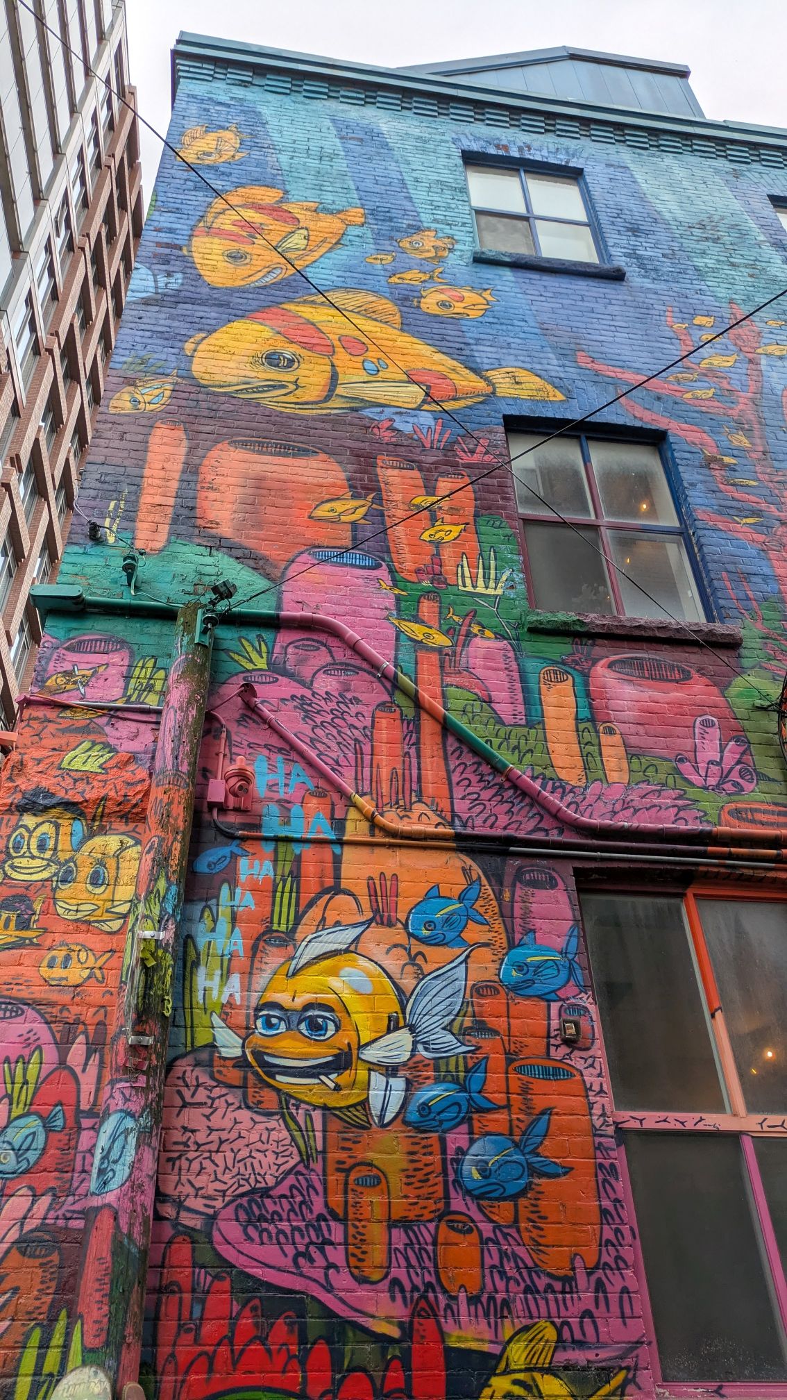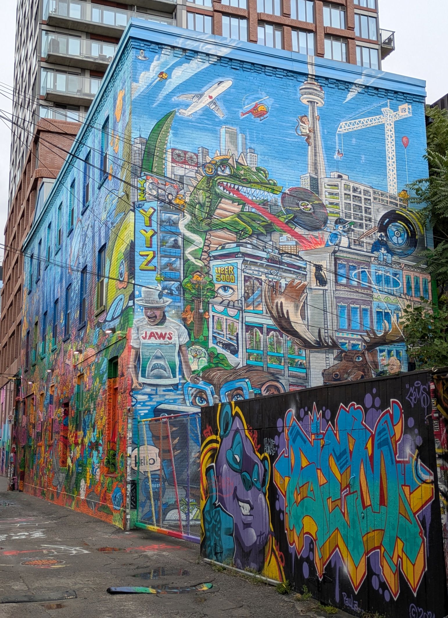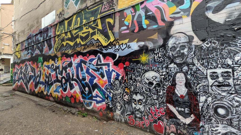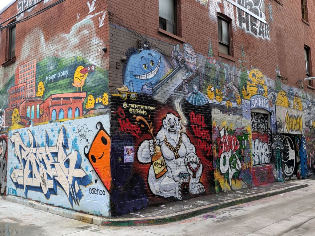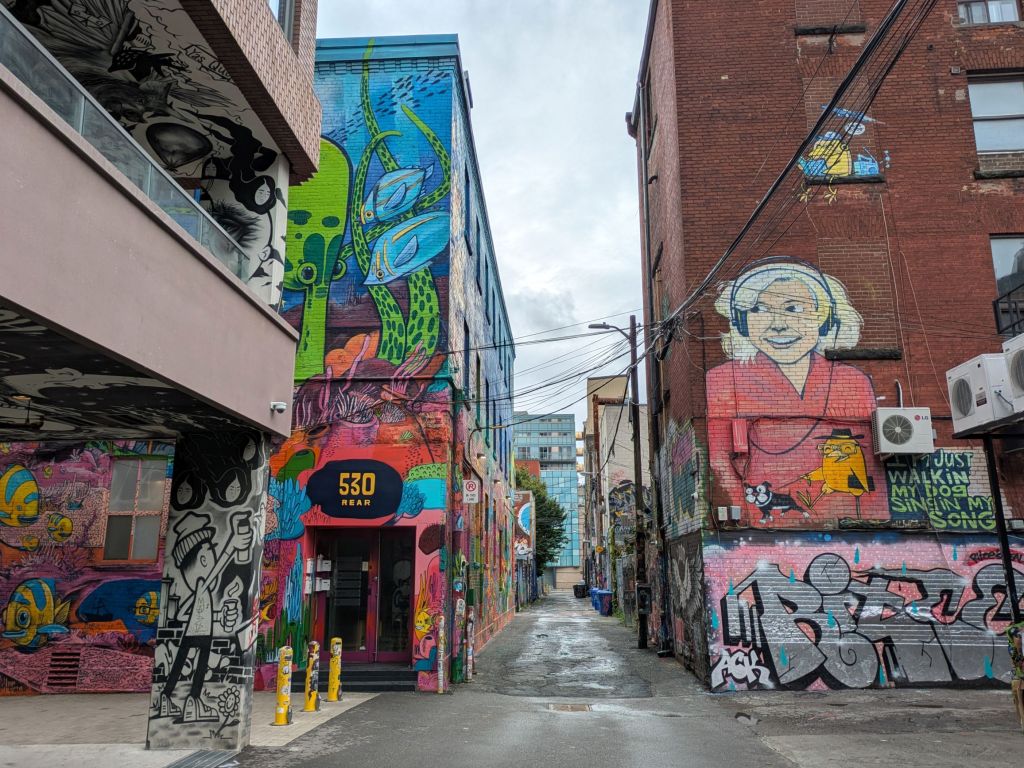 Nearby, in Toronto’s Fashion District, is Graffiti Alley, located on Rush Lane. Another hot spot for tourists and walking tours, we were amazed at the murals we saw there!