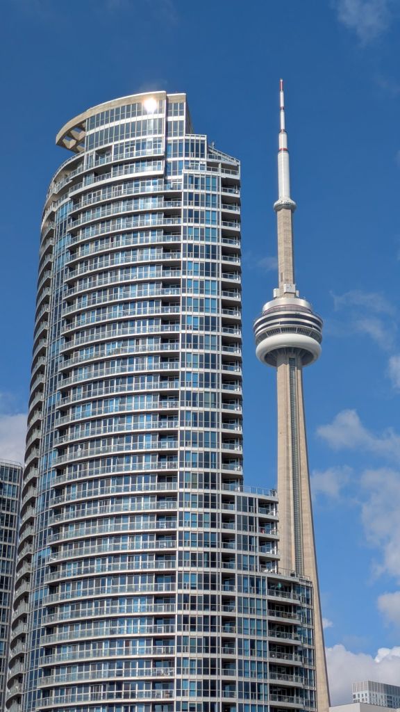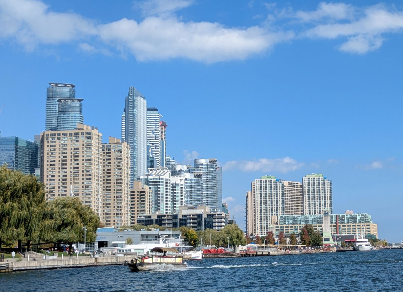 A must-do if you visit Toronto is taking a narrated harbor and islands cruise, especially if it’s a sunny day. Once you have cruised around the islands, you will want to see them in depth. I recommend doing the cruise early in your Toronto visit to get a good overview and then returning on another day to the waterfront and hopping on a ferry to the islands. We enjoyed walking around the islands so much that we returned on our final day to see what we missed the first time! More about the islands can be seen in my final post on Toronto, but here is a preview; our ferry ride to the islands: