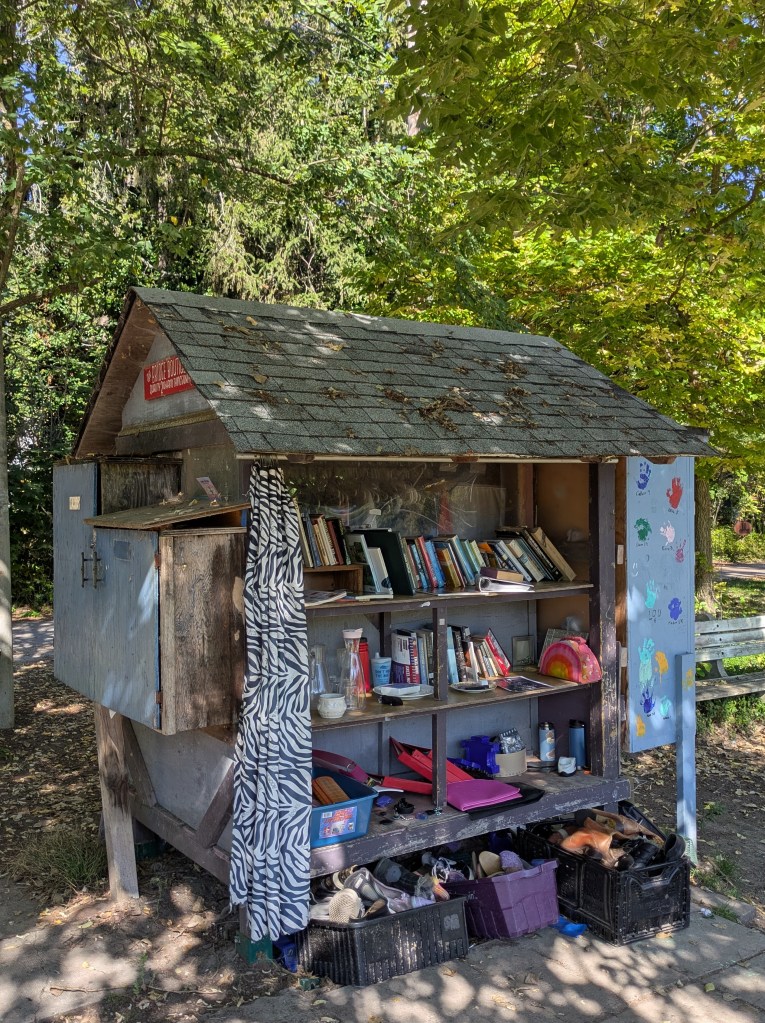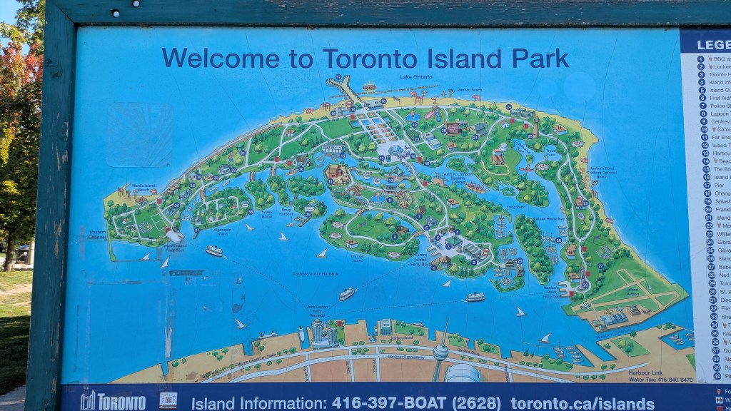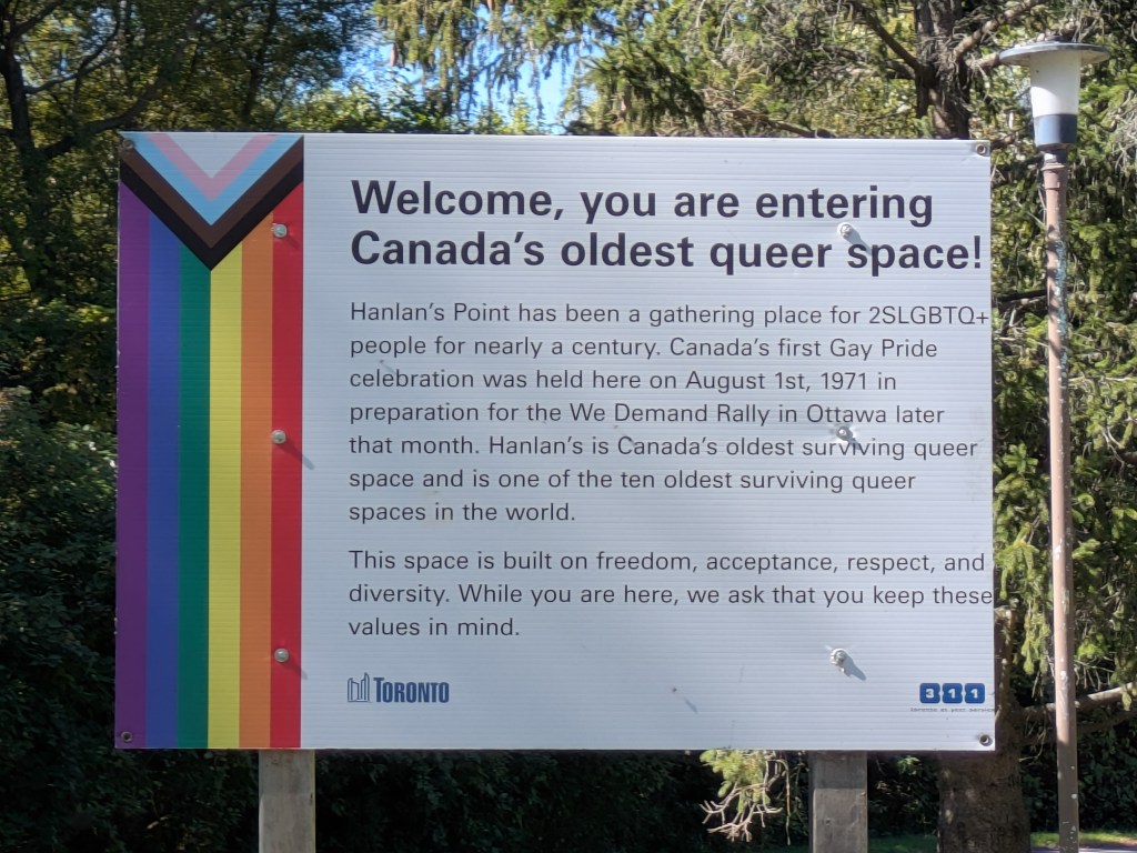 Another sign described each of the islands, just in case you couldn’t make up your mind which to see. “Hanlan’s Point is renowned for its beautiful sandy shores and is home to Toronto’s only clothing optional beach. It has been a gathering space for 2SLGBTQ+ people for nearly a century and is believed to be Canada’s oldest surviving queer space and one of the oldest continuous queer spaces in the world.”