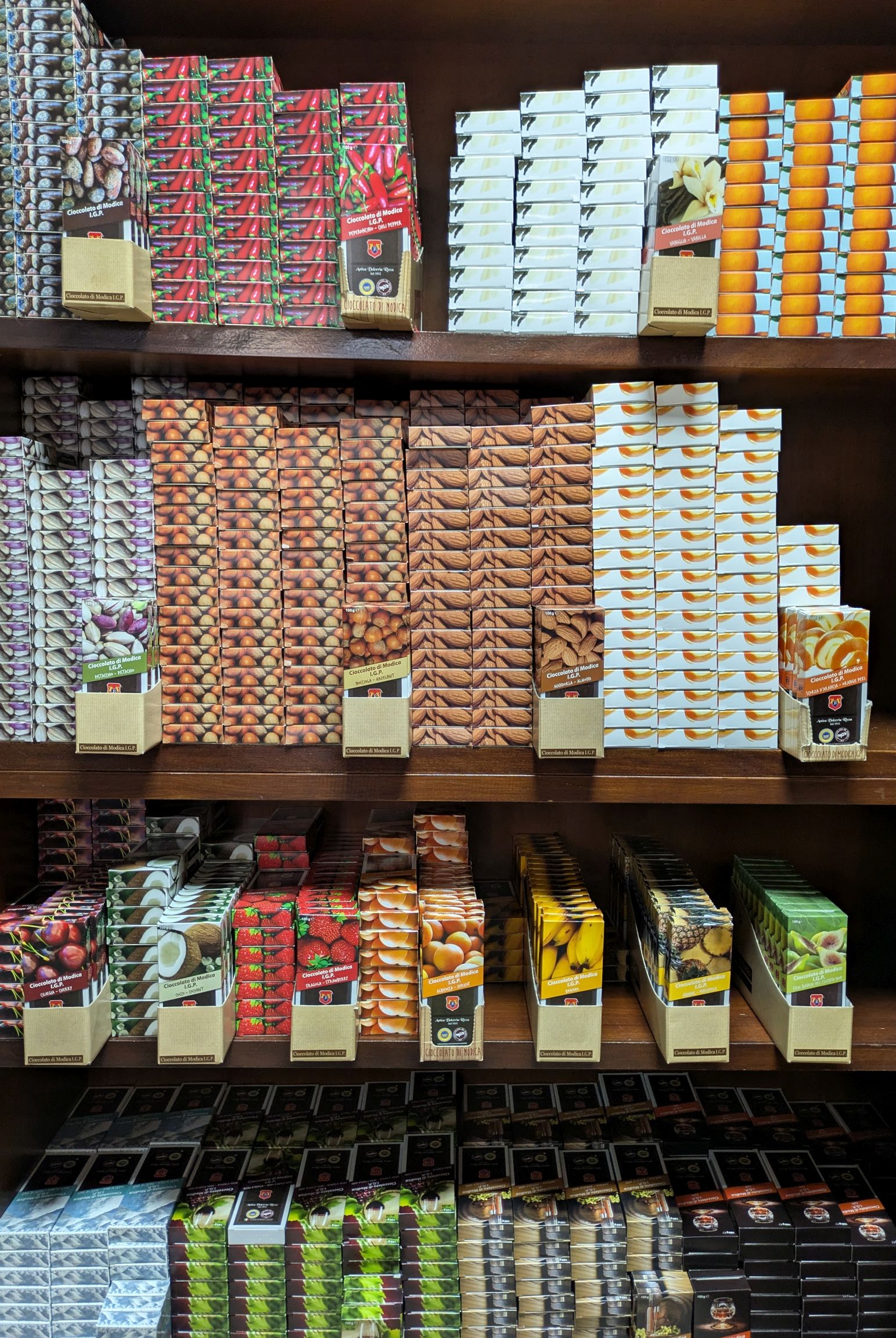 ITALY– Novi, Duca degli Abrazzi, Perugina, Domori, Benedictine, Larzaroni, Icam (milk- excellent), Caffarel, Sorini (dark w/ chili pepper- very good), Bacio, Venchi, Witor’s (truffle-excellent), Dolciando, Dolci Pensieri De Calabria, Loacker, Boella & Sorrisi, Solidal, Altromercato, Dulciar