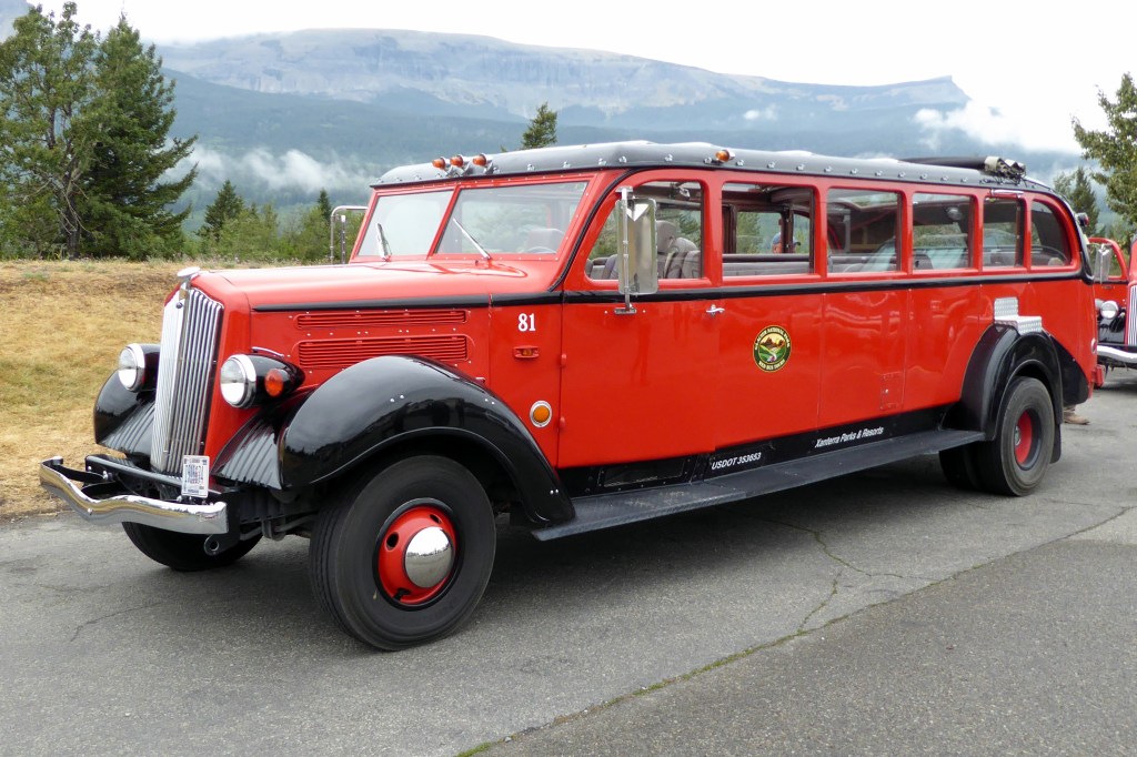 In the early days, visitors experienced Glacier National Park on horses.  When gravel roads were built, bumpy horseback rides were replaced by equally bumpy automobile rides.  In 1914, White Motor Company touring buses began taking passengers through the park.