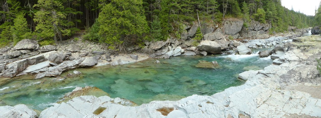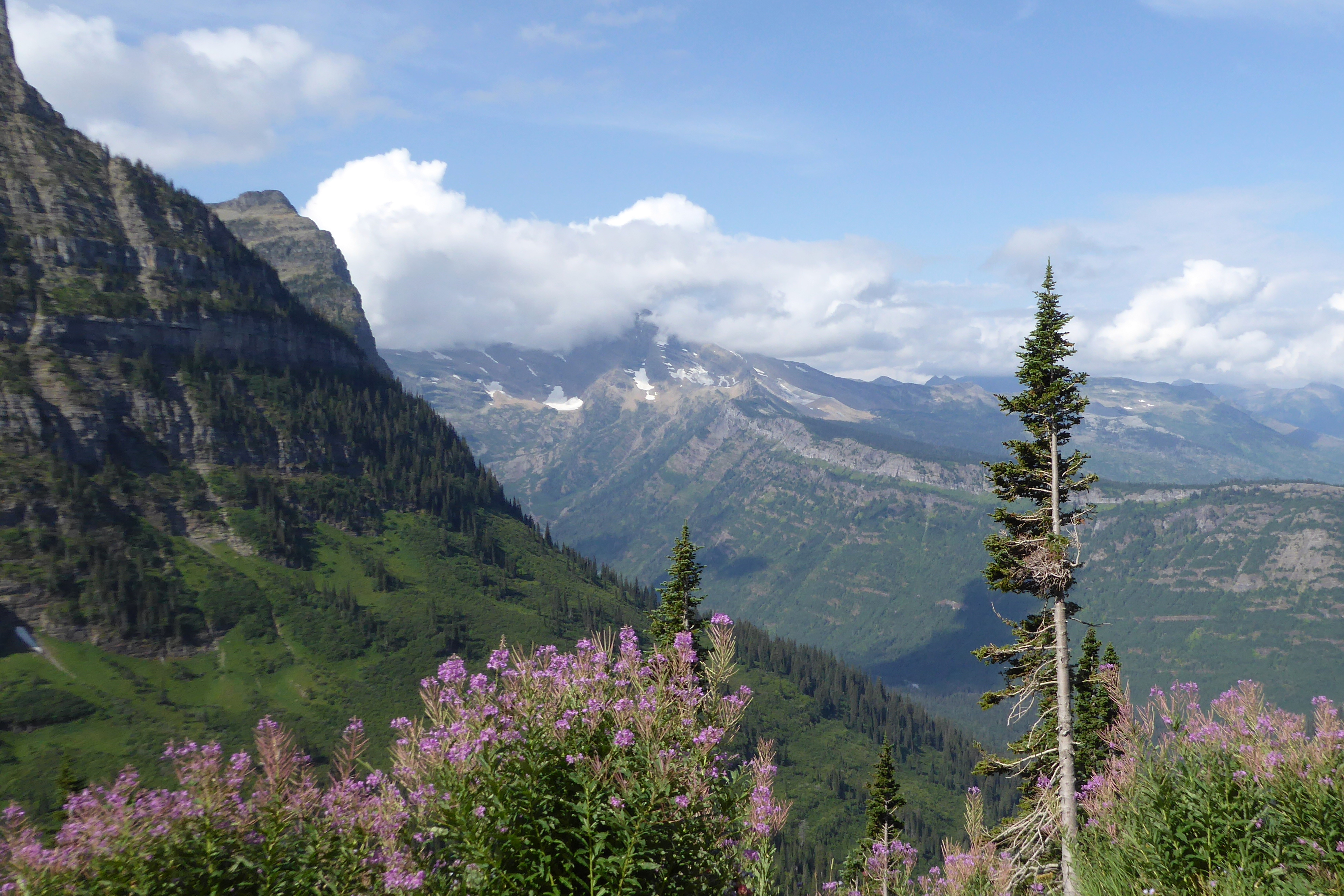 The windy, hairpin-curved road down from Logan Pass to Lake MacDonald was spectacular, making Going-to-the-Sun Road a must-see highlight of Glacier National Park.  The road was the first to be recognized on the National Historic Registers as a Place, Landmark, and Civil Engineering Landmark.   It crosses the Continental Divide, which marks the border between the eastern and western portions of North America.  Rivers originating east of the divide flow into the Atlantic Ocean, while rivers with headwaters west of the divide flow to the Pacific.  The panoramic views of the mountains and glaciers along the road was breathtaking!