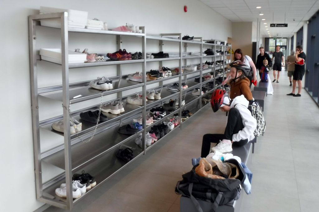 The shoe rack at the pool in Selfoss, Iceland.