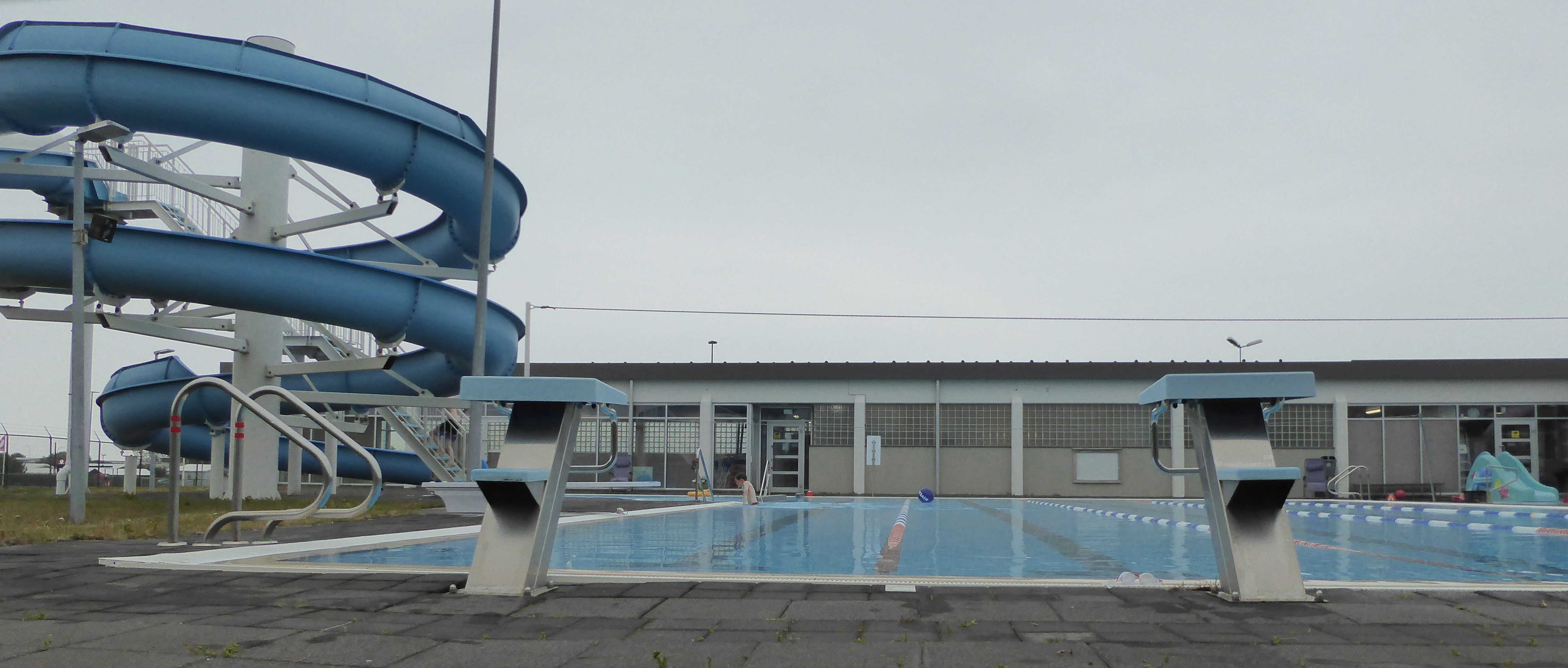 The pool in Stykkisholmur, photographed from outside the fence after the pool had closed.  This slide wasn’t quite as terrifying.