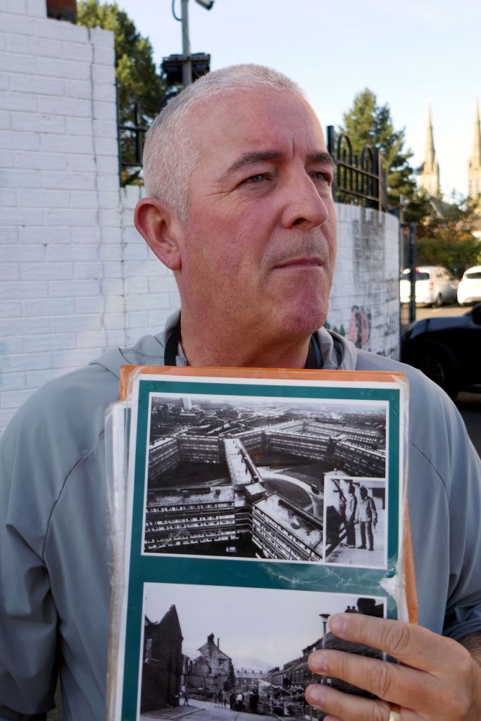 Glenn, 57, was a former member of the British army and is a current member of Veterans for Peace. He was born near the wall on the Protestant side and raised by his grandparents. Although Glenn considers himself Irish, he agreed with the British, even though he was working class. He was just five years old when the IRA detonated a bomb injuring him, and he thought of the IRA as a murder gang.