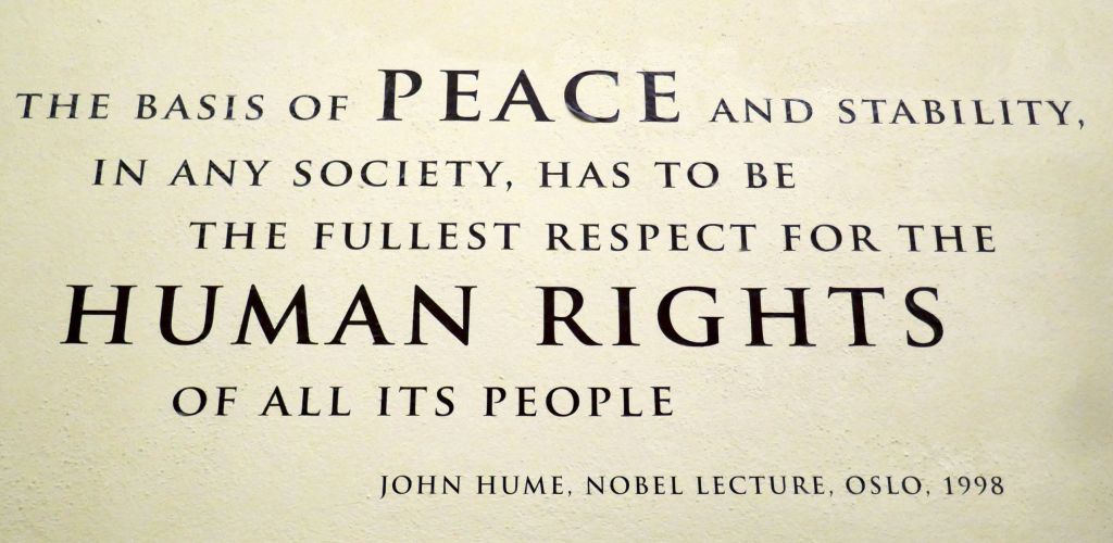 The man in the upper left is John Hume; see next photo, taken at a display at Guildhall honoring him.