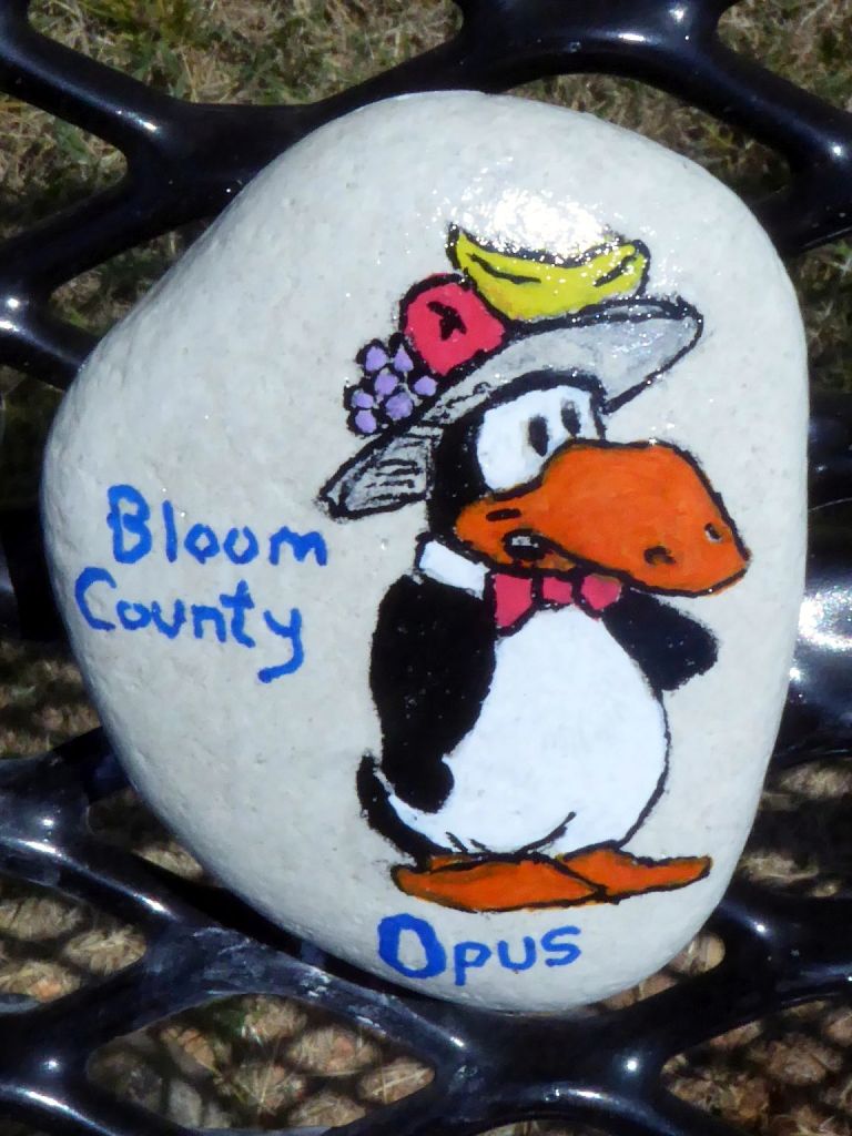 Yesterday, it was a toucan, and today, it’s a penguin! Opus is visiting us from Bloom County. I guess the Falkland Islands Brit needed a bit of a getaway and found our Sun City Peachtree community a pleasant place to kick back, after his long trip across the pond.
