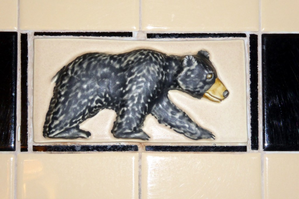 Tile and glass mosaic on the side of a craft shop. There was one for each season. This was my favorite, “Summer.”