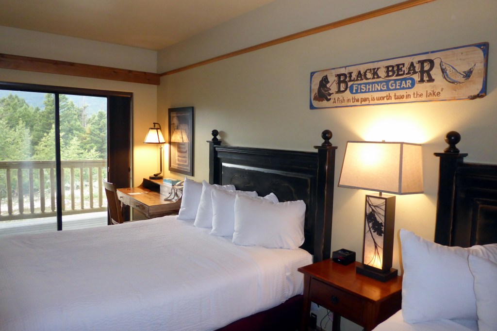 Our upstairs room at the lodge had rustic mountain décor too cute not to make me laugh. The highlight, however, was the balcony looking out over the river flowing by. We kept our sliding glass door open until we got cold, so we could enjoy the mesmerizing and thoroughly relaxing sound of the water. Ahhh!
