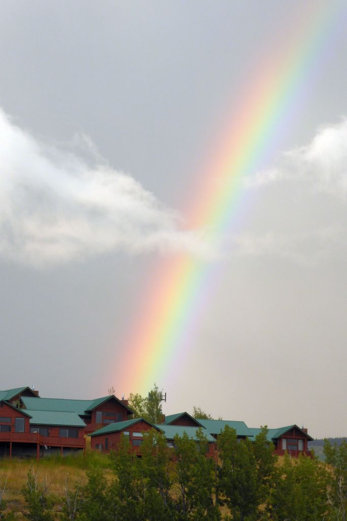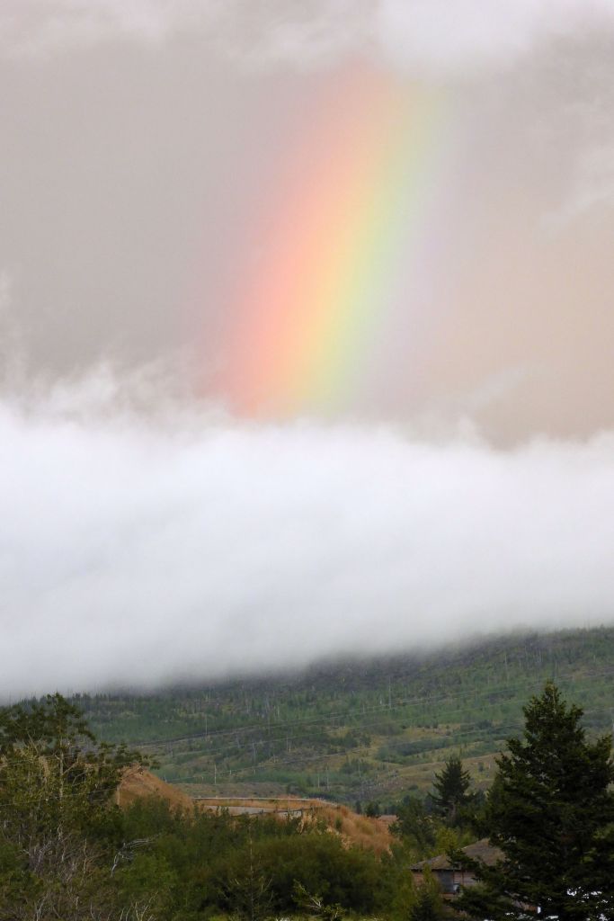 After crossing the 49th parallel into Montana, we arrived at St. Mary Village, our base for two nights. This is where we had the gloomiest weather; however, it rained while we were enjoying our dinner, and then stopped before we left the hotel’s restaurant and were greeted with this: