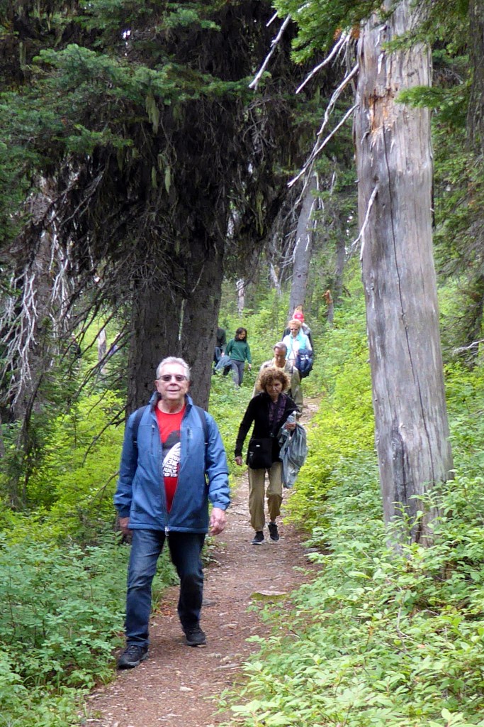 Since Bruce and I arrived at the Hyatt in Calgary too late to join the group for the welcome dinner, we didn’t meet everybody until the following day when we set off for Glacier National Park. As it turned out, at 60, I was the youngest of the group by ten years; however, most of the group were active enough to handle the walks and hikes.