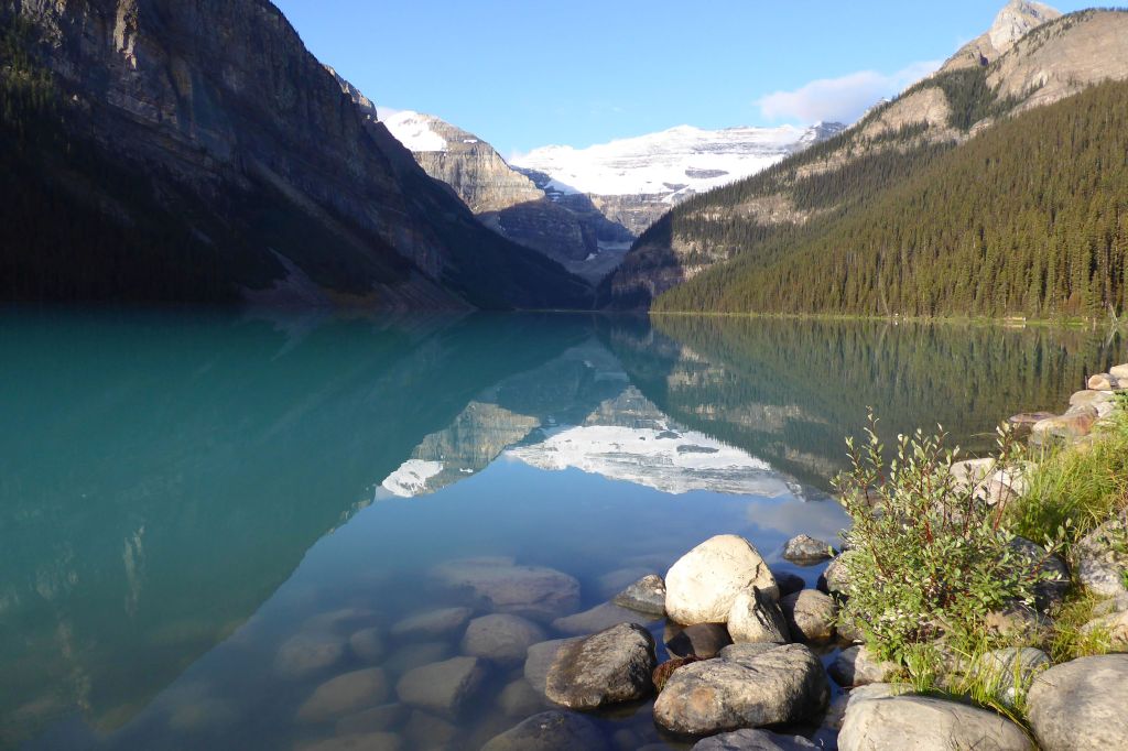 At Lake Louise, we opted to walk the recommended lakeside path; however, some members of our group hiked on alternate trails or visited the hotel. It was a beautiful, calm morning, so the reflections in the emerald green water were breathtaking throughout our walk!