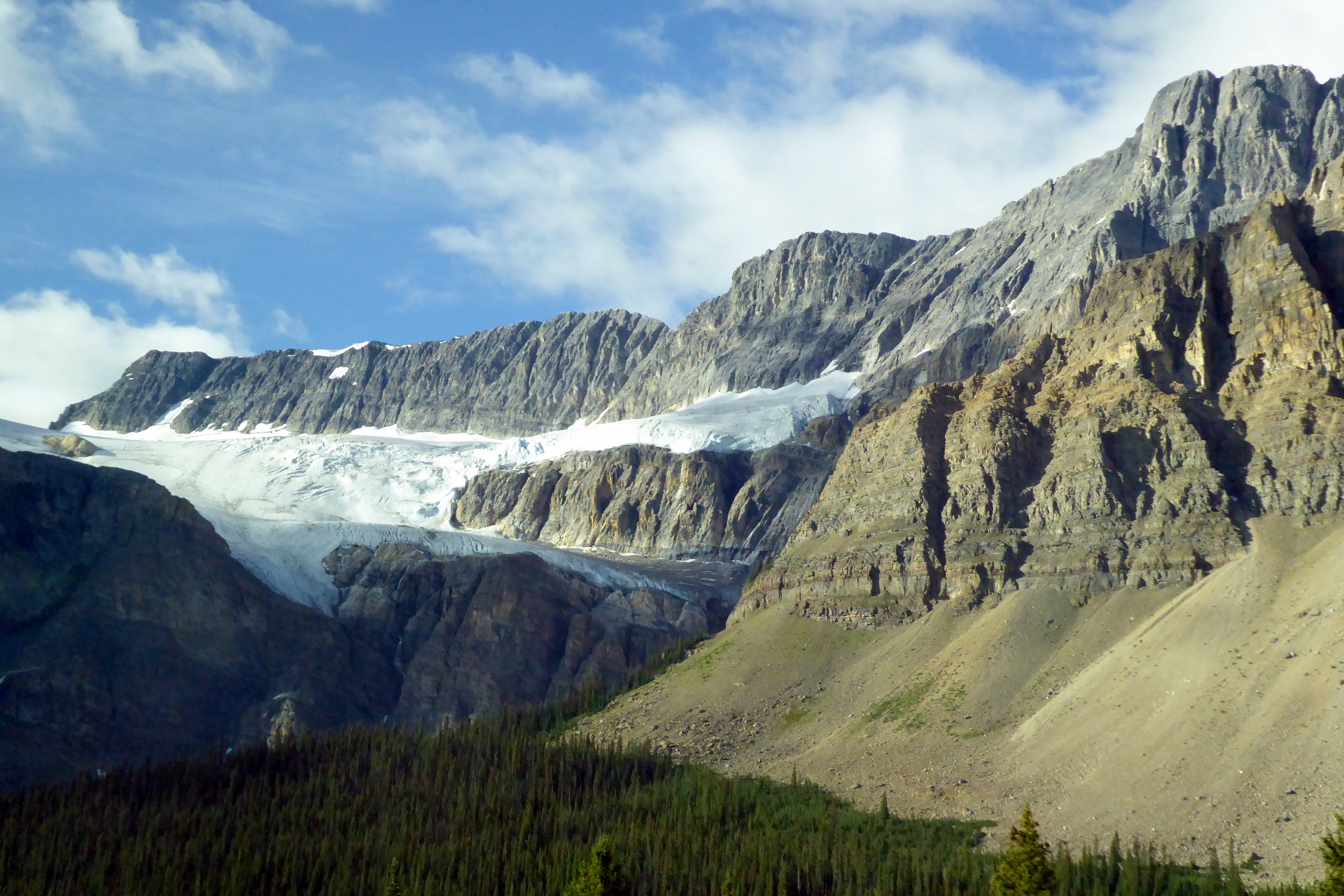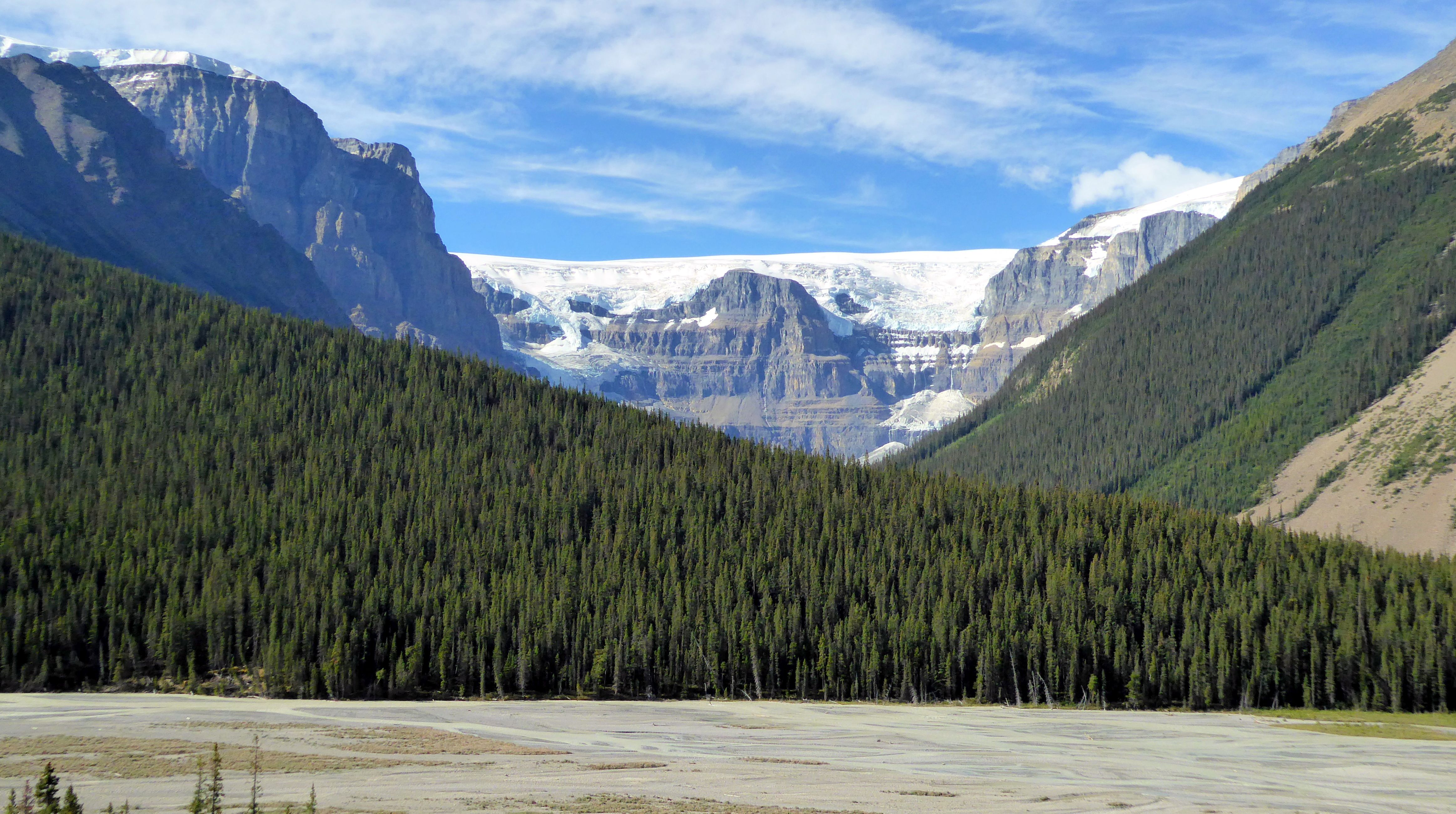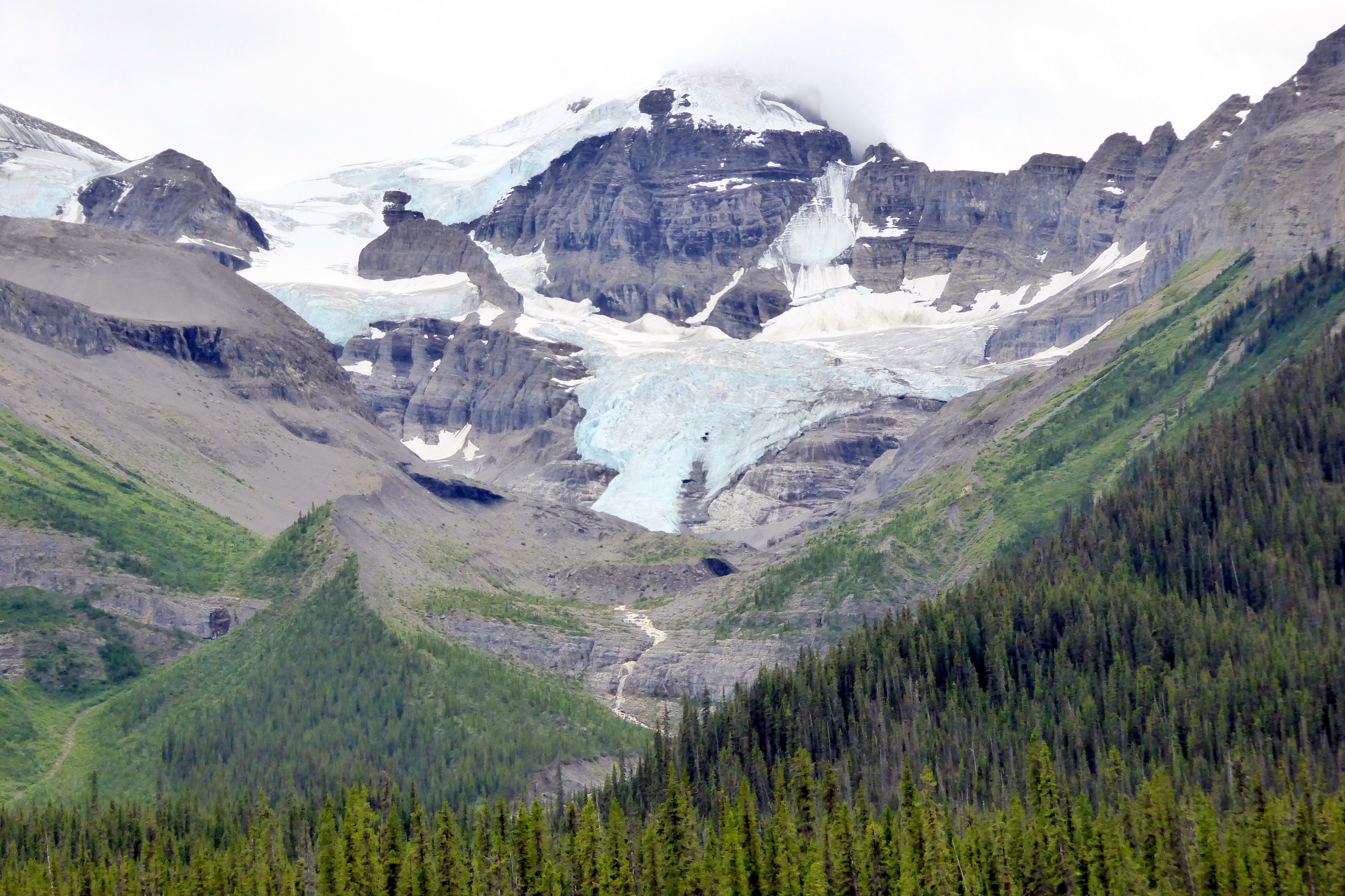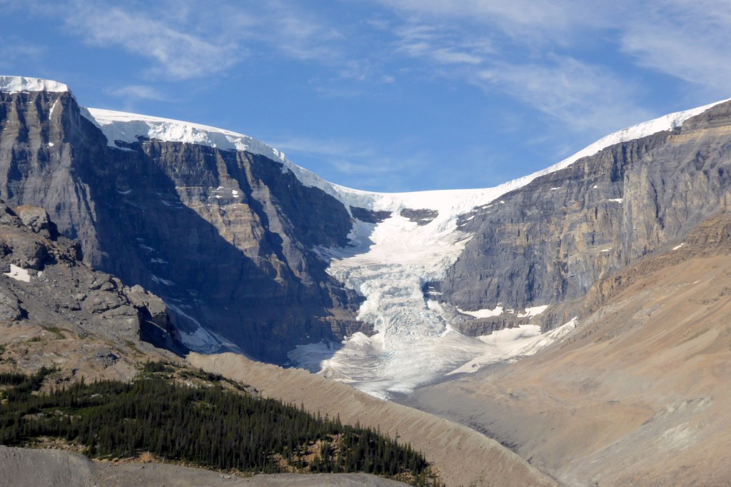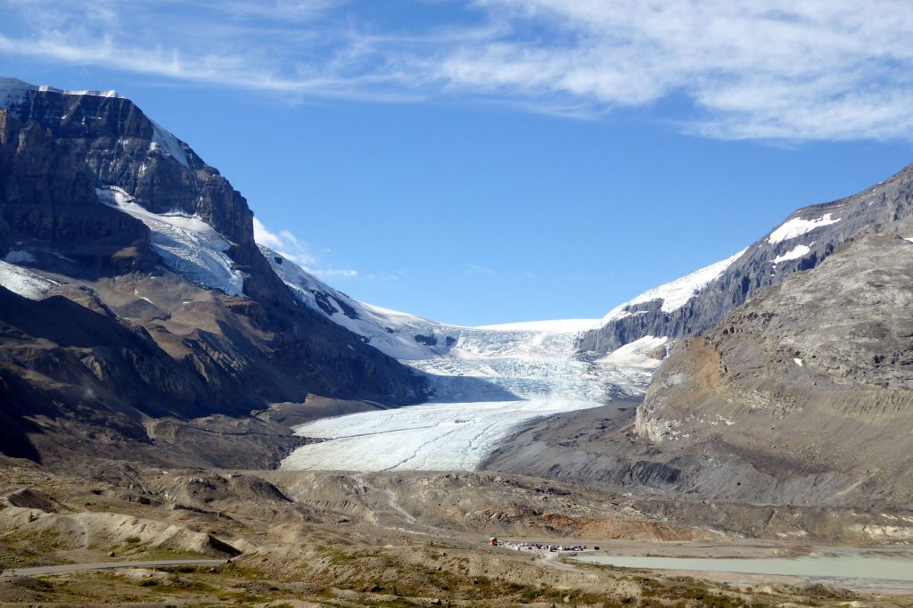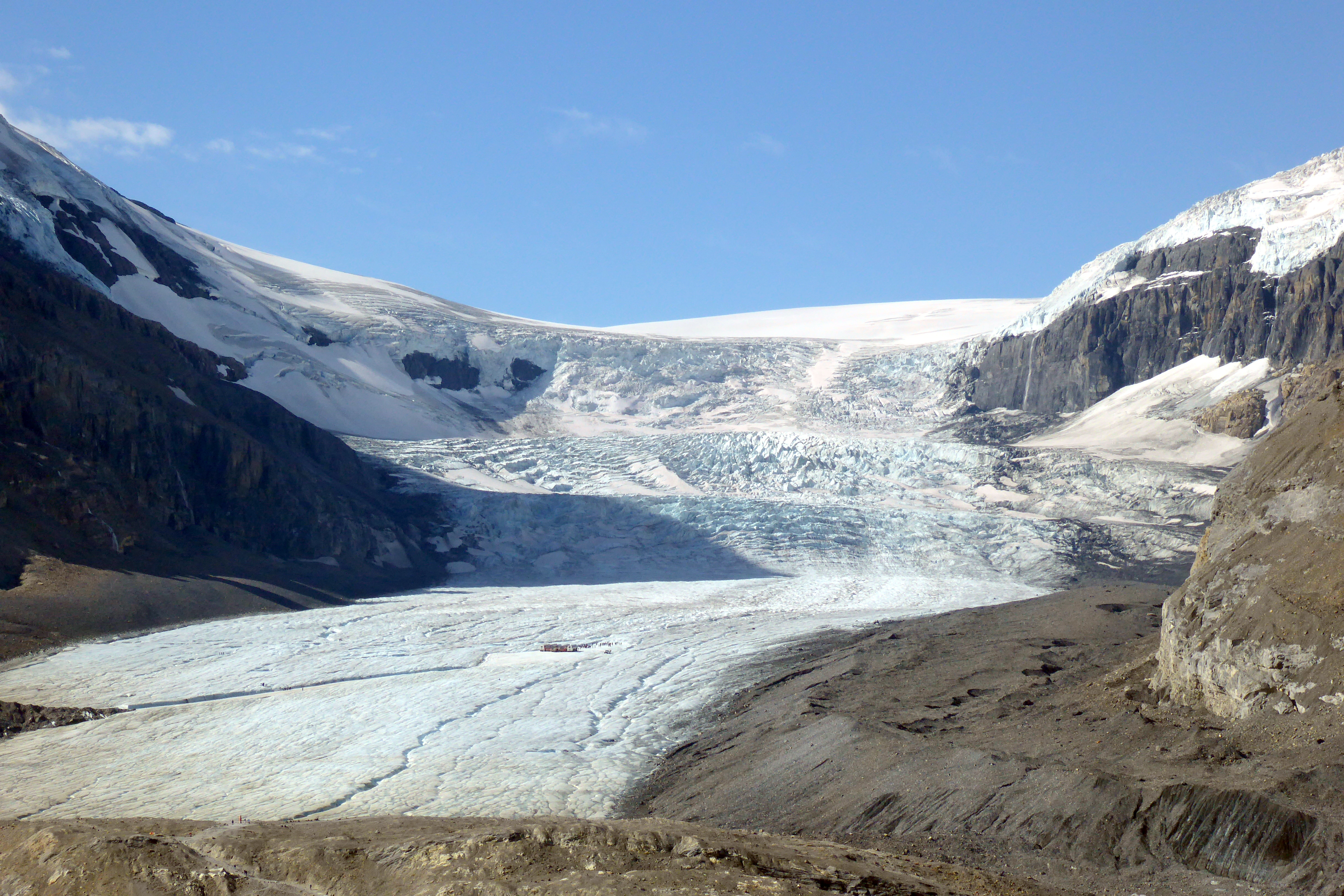 Dome Glacier, near Athabasca GlacierAthabasca Glacier and the ice field where we were headed next. Since 1844 when the glacier reached its maximum, the edge of the glacier has retreated about one mile. That retreat continues today as warmer local temperatures continue to melt each summer than is replaced by winter snow accumulation.