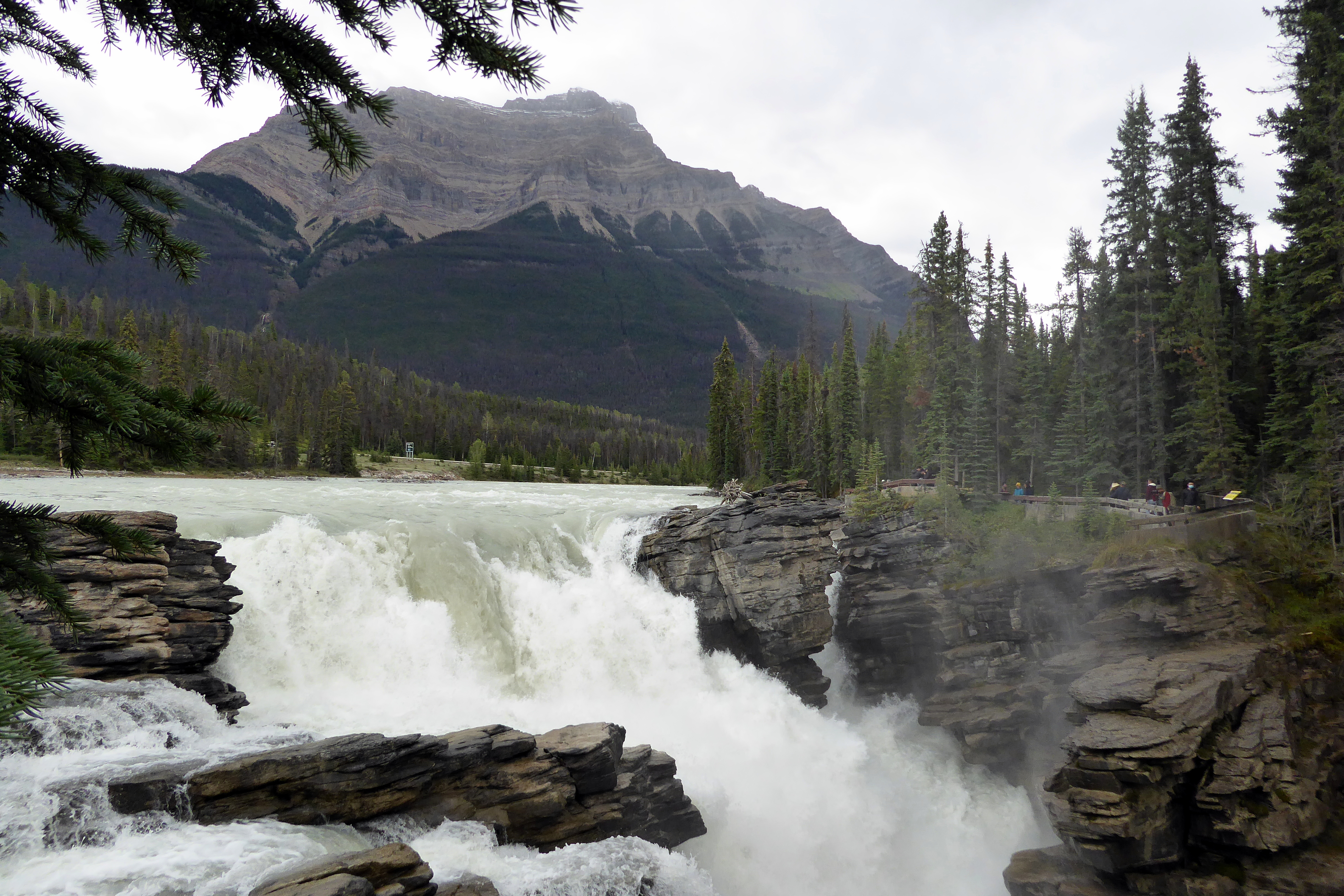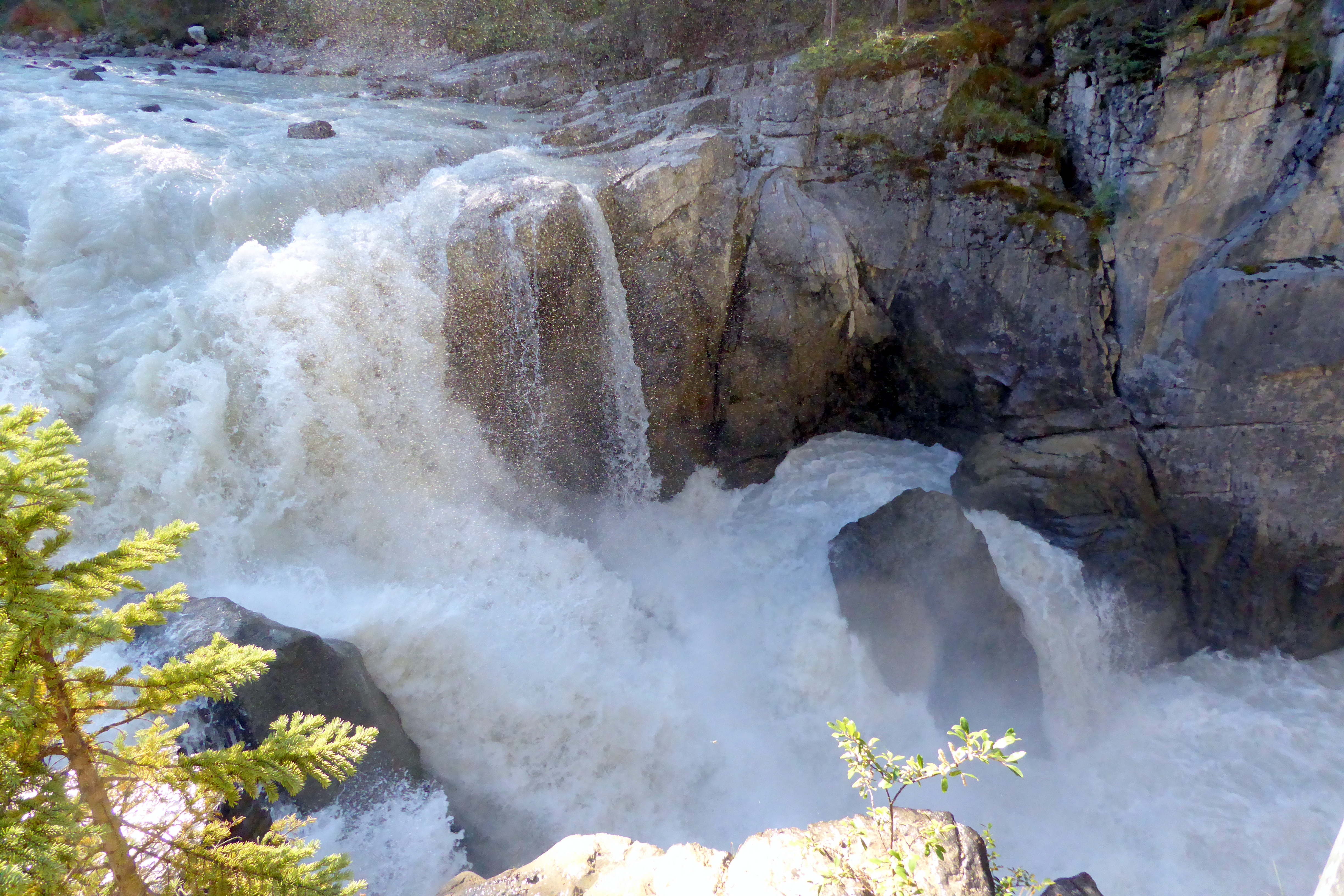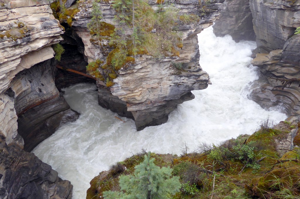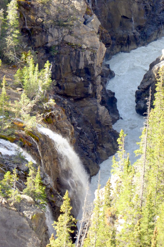 Following our buffet lunch back at the base station, we stopped for a hike at Athabasca Falls and River after passing by this waterfall: