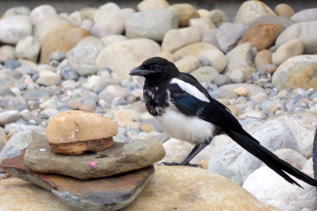 As Bruce, Scott, and I hiked the trails behind the visitor center in search of spotting a big horn sheep (as Scott was sure we would see), I lamented to Scott that Bruce’s and my luck of having great weather during our previous travels had run out. Not more than two minutes later, magic! The clouds began to lift, we could see the glaciers, and my sullen mood brightened along with the beautiful blue sky. (We never did see a mountain goat, but we did spot this squirrel—wildlife!):