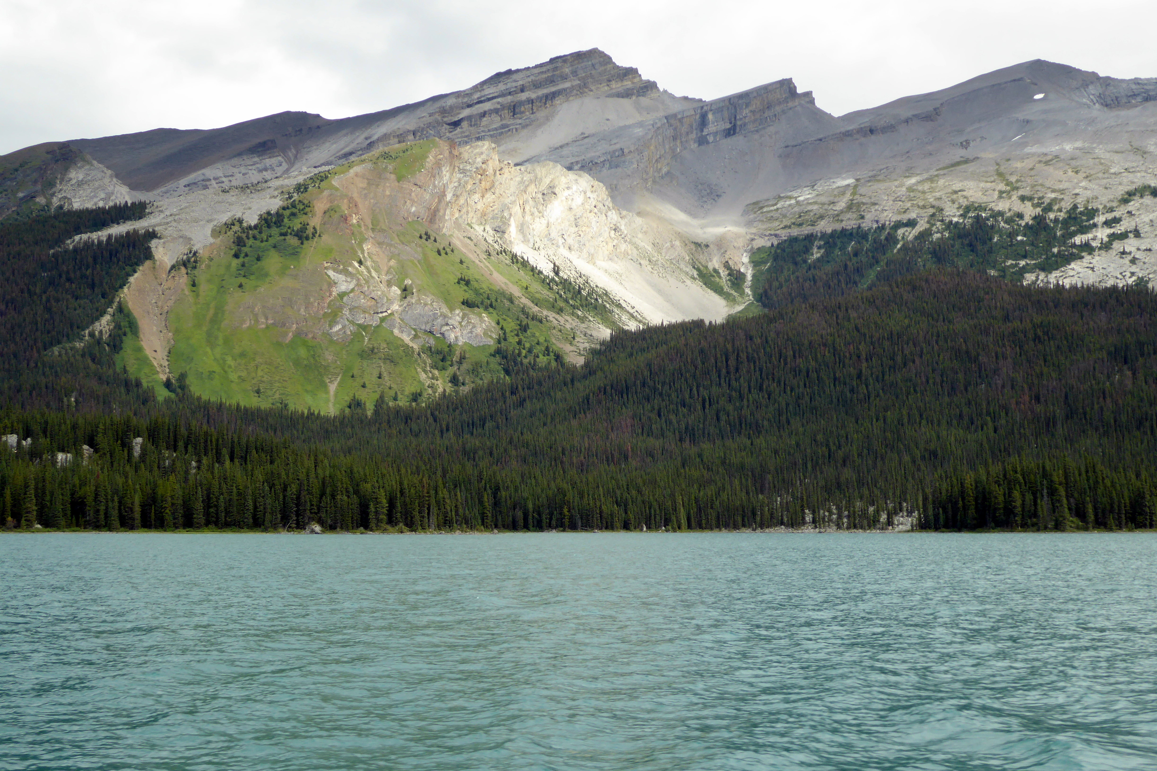 It was interesting to see how the water changed to a more emerald color, the further south we traveled, and the closer we got to Spirit Island. This was due to the presence of rock flourfrom the glaciers.
