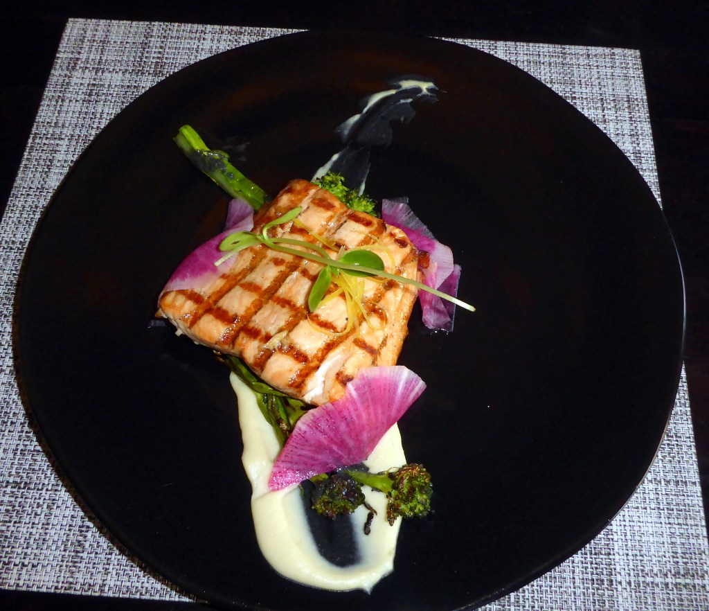 Grouse Mountain Grillwas where we savored our included group dinner to put an exclamation point on the day. The veggie option on our limited menu was grilled cauliflower, bok choy, (and more), in a coconut-ginger curry sauce. Salmon or chicken was an optional addition, so we extended our salmon streak and thoroughly enjoyed every bite.