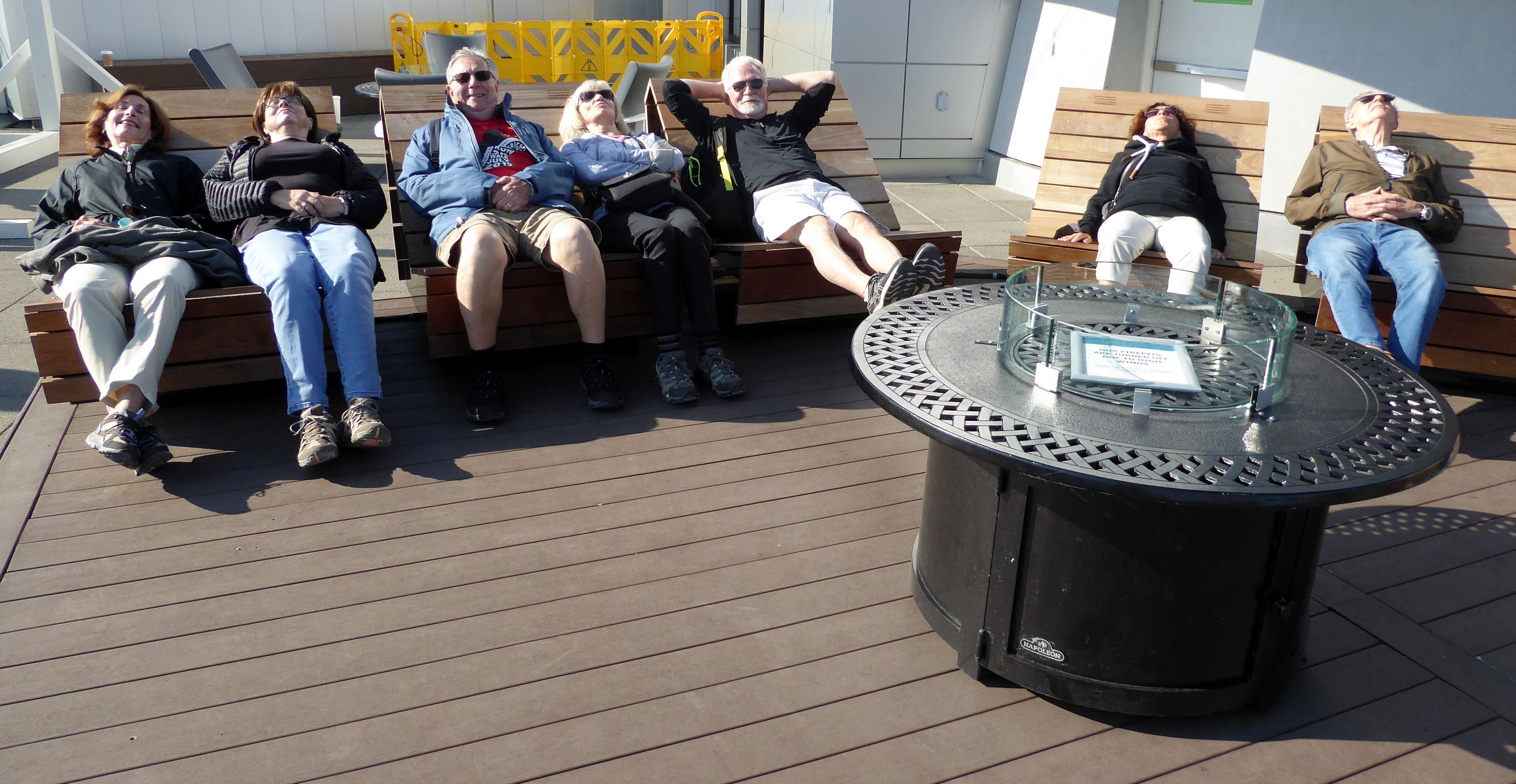 Playing tourist is hard work! Some of our group took a short break before heading back down the mountain.
