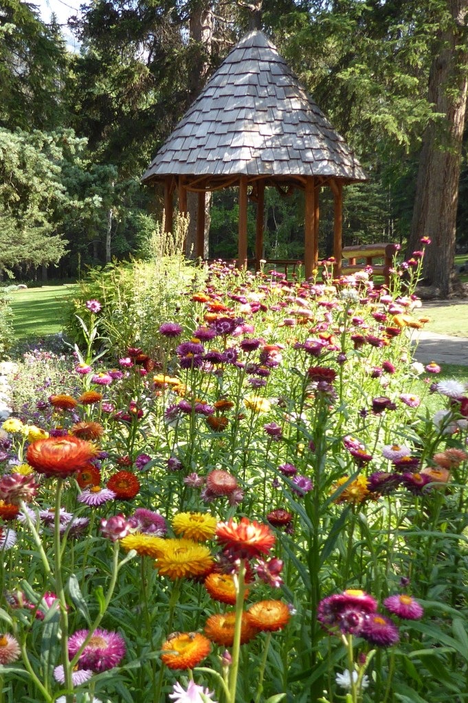 Beautiful flower baskets and plantings graced the front of the hotel above the lake.