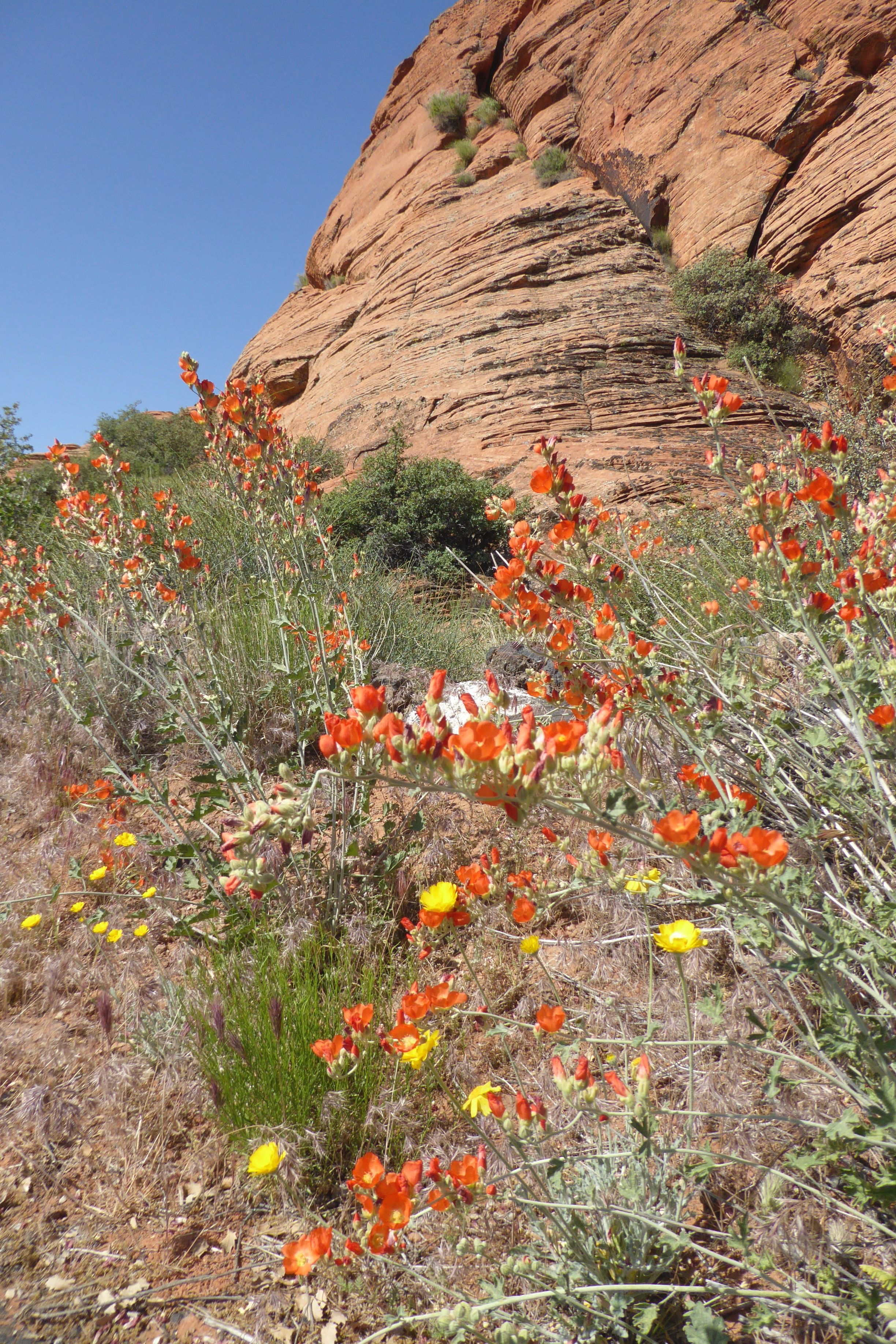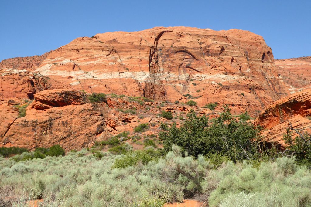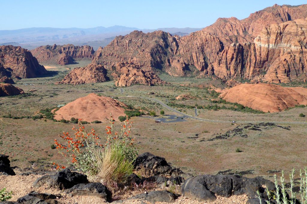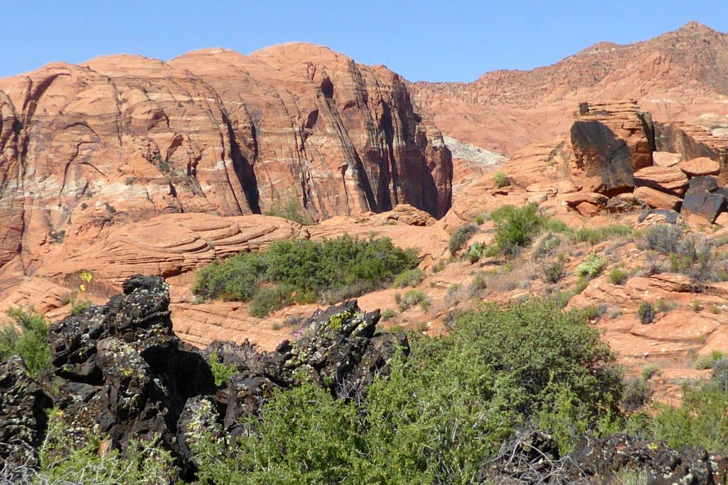 On our first full day of the tour, we learned about the geology of the parks we would be visiting, and then went to see our first park: Snow Canyon State Park, located near St. George, in the Red Cliffs Desert Reserve. The red you will see in the photos below is Navajo Sandstone.