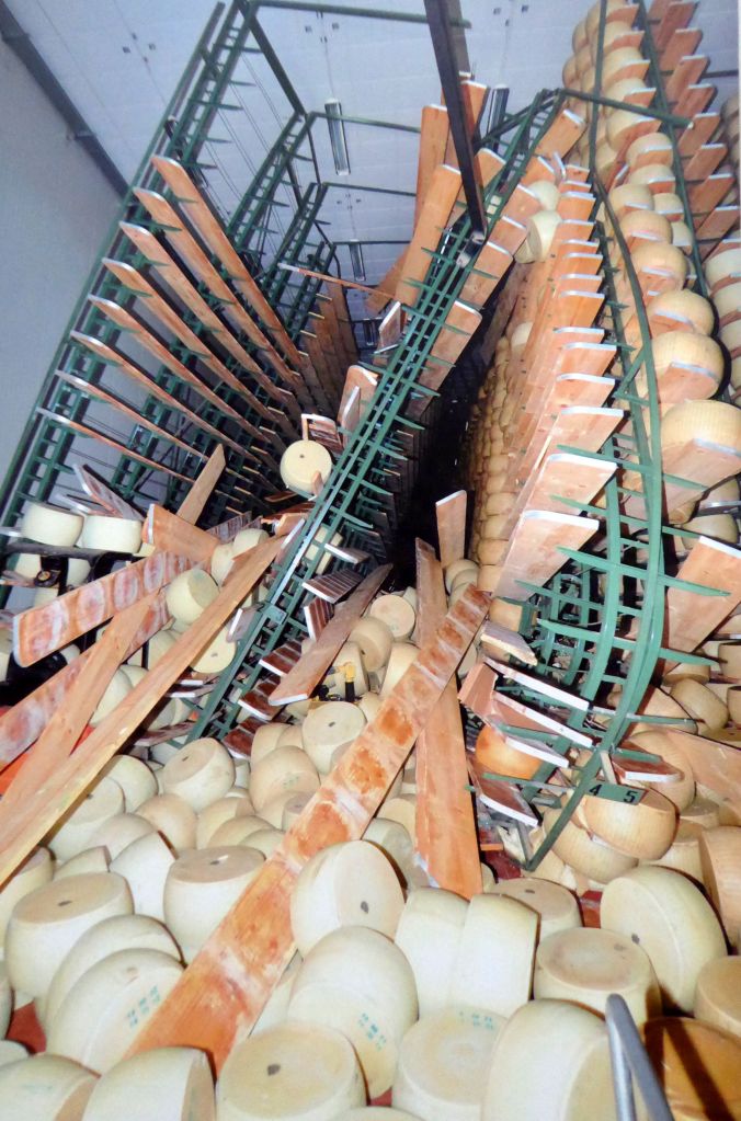 This is a picture of a photo they had on display. Two earthquakes in May of 2012 seriously damaged two of their three plants, and many cheese wheels were destroyed.