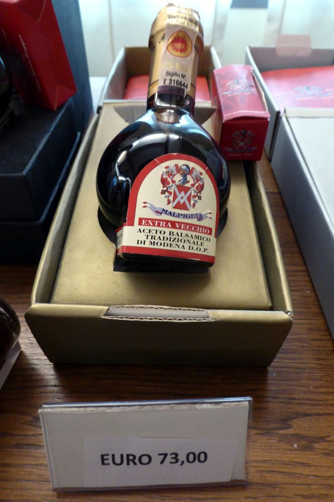 The color of the bottle cap distinguishes the age. A 25-year-old balsamic vinegar gets a gold-colored cap. Malpighi’s most-aged balsamic was on sale in their shop for Euro 450—more than $450!
