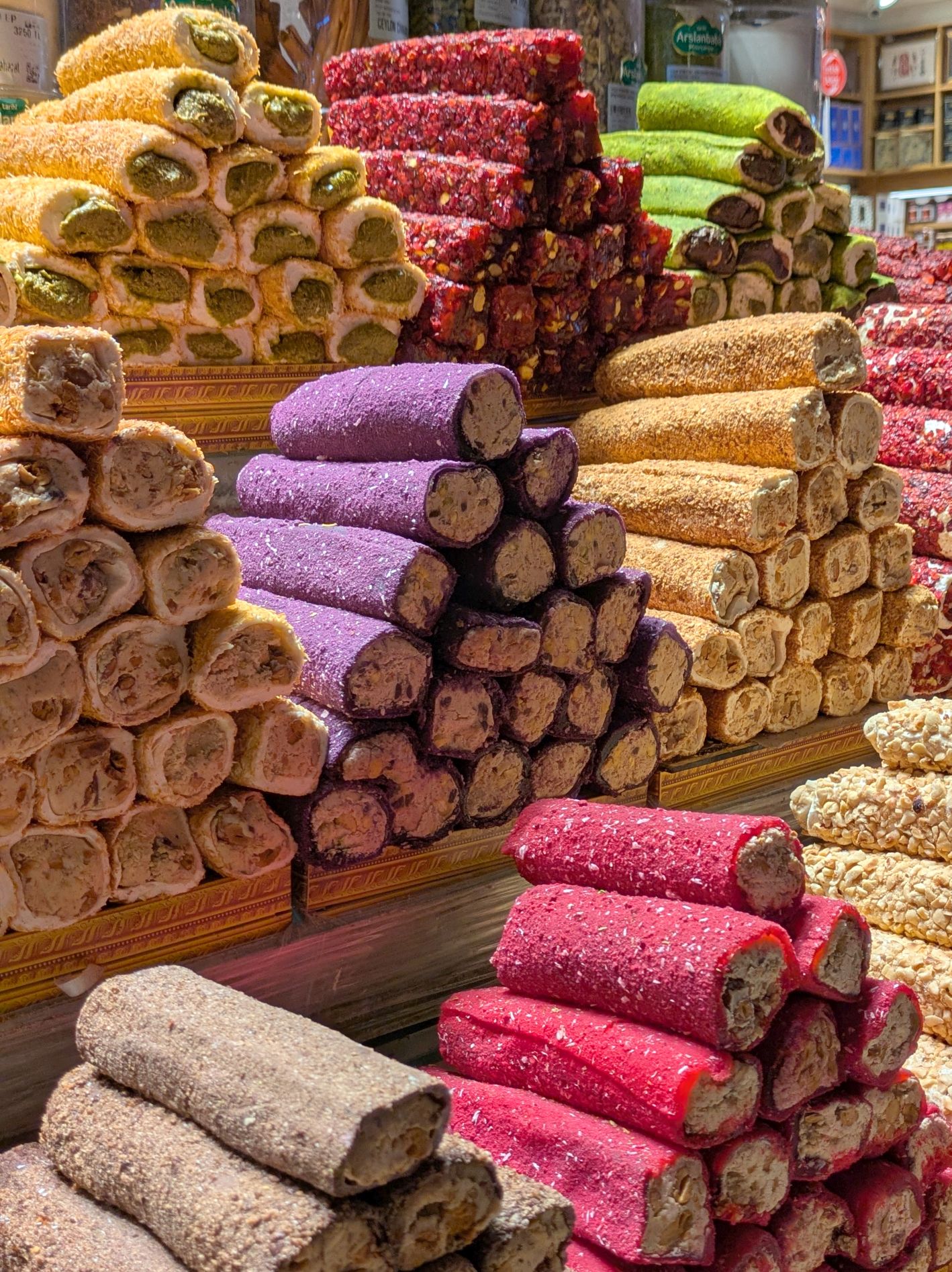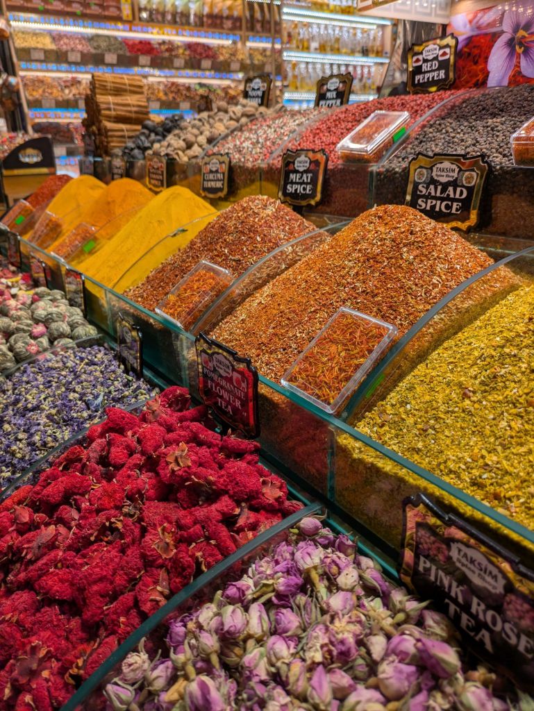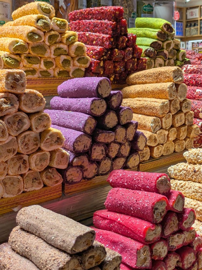 I previously mentioned that we also visited the Spice Bazaar while we were in Istanbul. Known to locals as the Misir Carsisi, it dates back to 1660 and is one of the largest bazaars in Istanbul. It was very similar to the Grand Bazaar in its display of spices and Turkish delight, so I combined those photos in Turkiye #2.