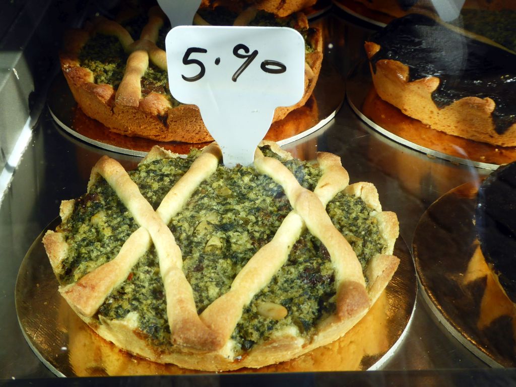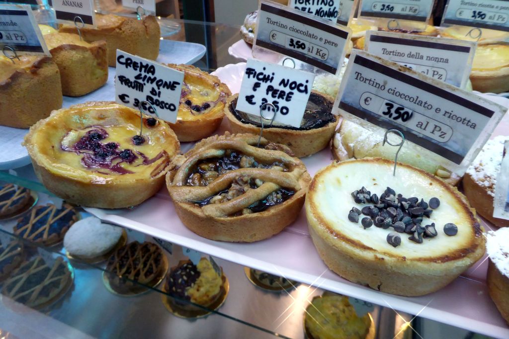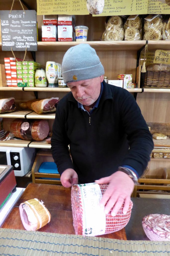 We stopped in at Il Mercatino for some made-to-order paninis. After pointing to the ingredients we wanted for our custom sandwiches, the sandwiches were weighed and priced accordingly. I opted for pecorino cheese and sun-dried tomatoes; Bruce added meat. The sandwiches were so delicious and filling; and, they only cost about $7.50 for both!