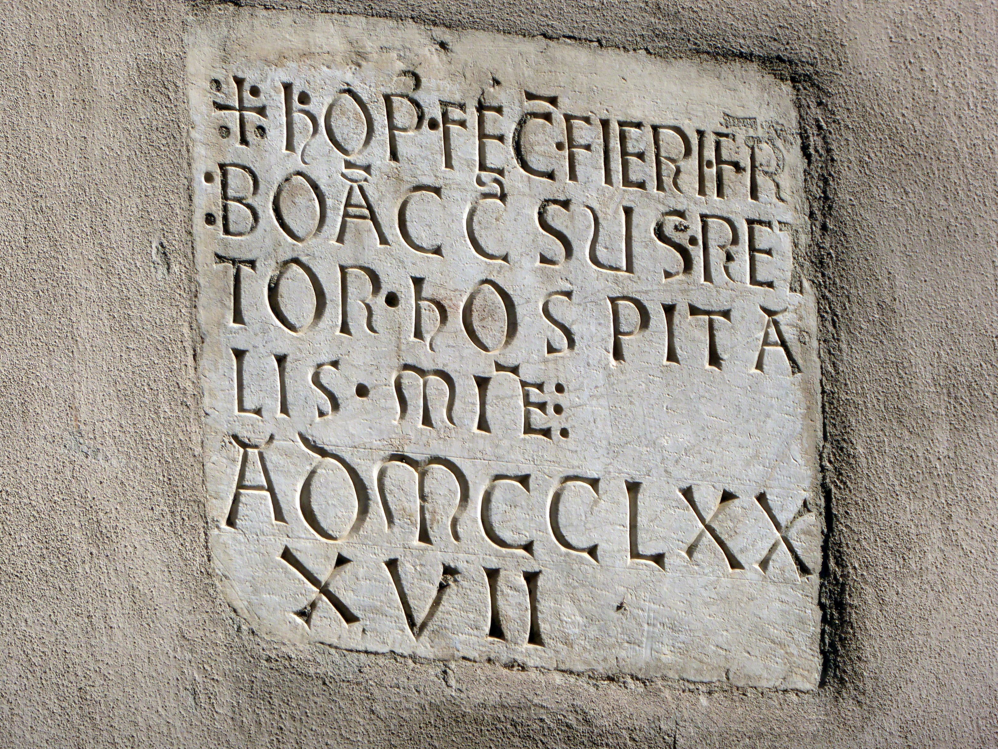The San Luca Palace Hotel, where we were staying, also had some interesting history. Back in the 1200’s, it was a hospital. After being abandoned and sitting empty for a very long time, it was renovated and opened as a hotel in 1999. The building across the street was also part of the hospital, and the original sign can still be seen on the wall stating it was built in 1257.