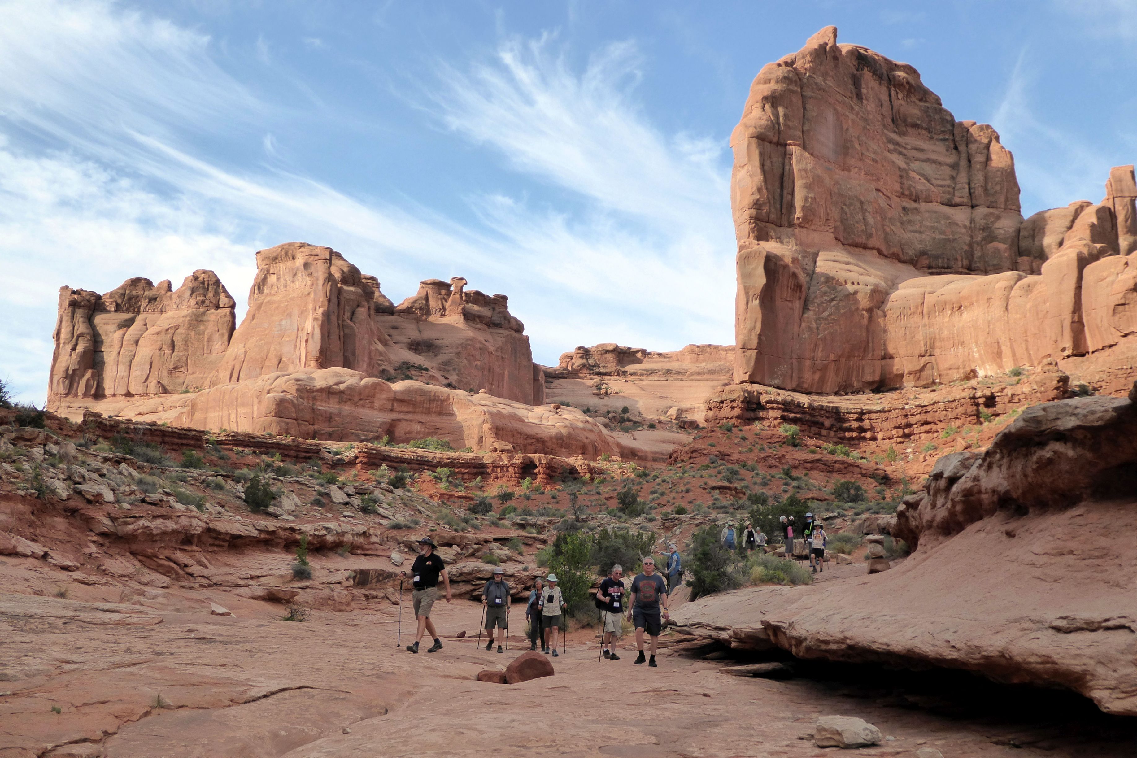 This is an easy park to get to; it’s only four miles from Moab, Utah. Get there early, though, because the parking lots fill up fast. We were fortunate to be on a bus and not have to worry about that.