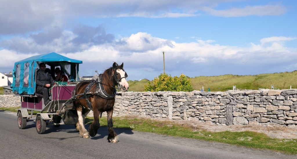 Back in the 1900’s, the locals knitted sweaters to sell for income. Children learned very young, knitting sweaters beginning at the age of 5. Currently, in addition to earning income from the sweaters they knit and sell, tourism has contributed to their economy. Between the ferries bringing tourists for the day and tours aboard horse drawn wagons, the island can get busy on a nice day during high season.