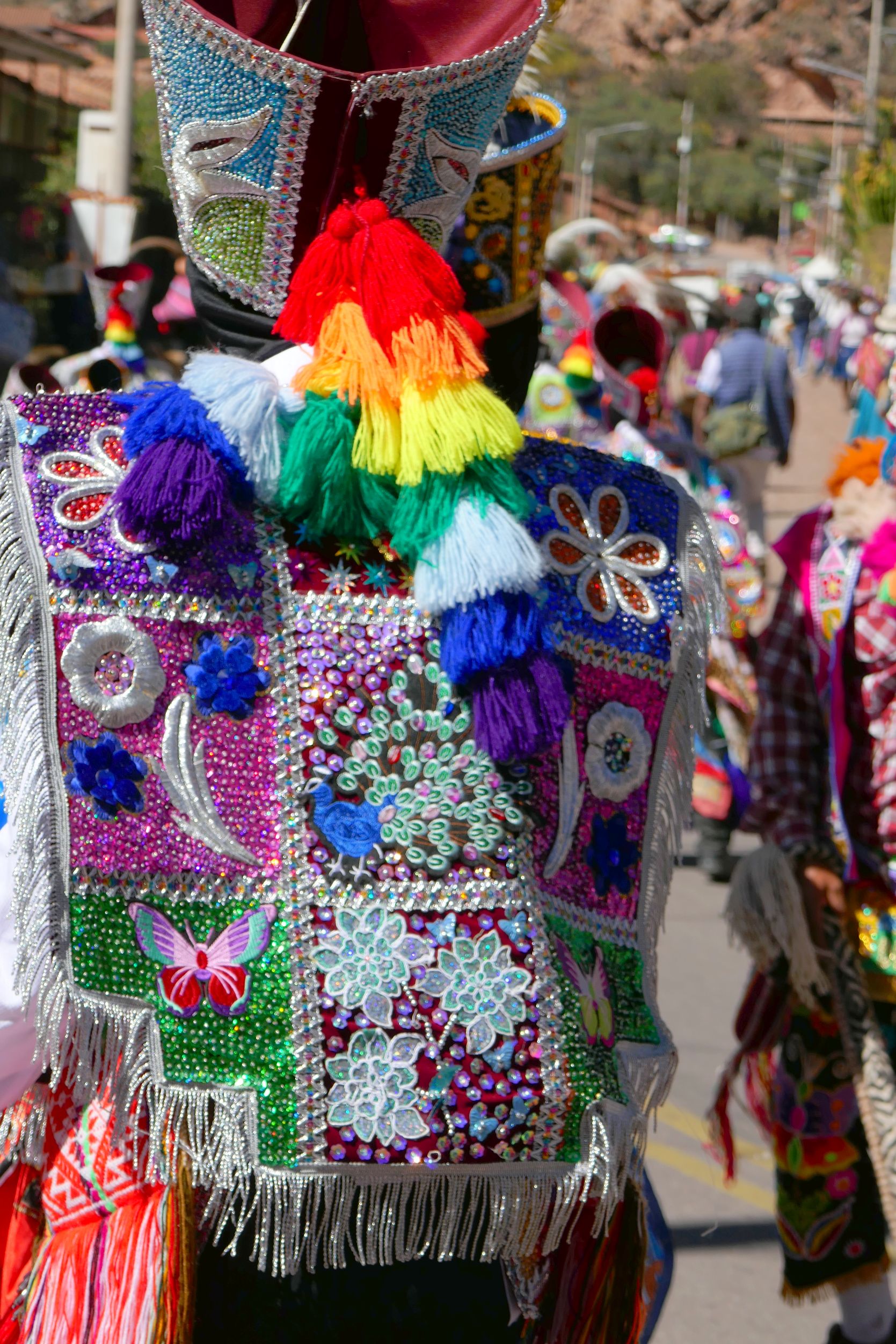What a joyous, colorful, and noisy celebration! The participating folkloric dance groups were dressed in amazing handmade costumes, competing for the top prize. Each year, many hours are spent making each new costume by hand with every sequin and applique sewn on individually. What a feast for the eyes! The entire experience was a great introduction to the culture of the Sacred Valley.